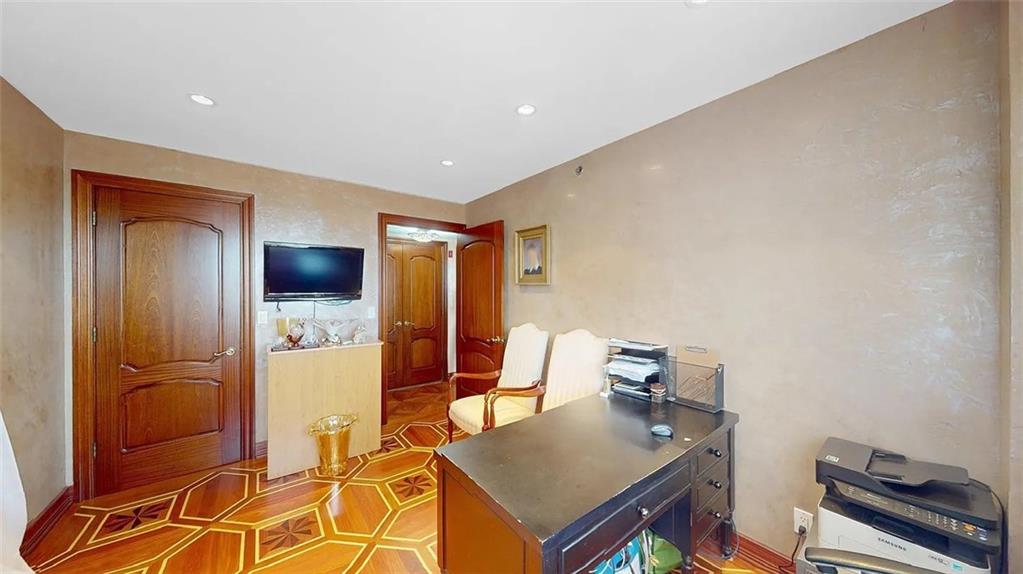 Luxurious Penthouse Living in the Heart of Sheepshead Bay Step into sophistication with this extraordinary three-bedroom, two-bathroom penthouse condo offering approximately 1,500 square feet of beautifully curated living space in one of Brooklyn’s most desirable waterfront neighborhoods. Perched at the top, this residence offers a rare blend of privacy, comfort, and style—enhanced by soundproof walls and floors for serene city living. Bask in sunlight all day long from two oversized balconies with unobstructed east and west-facing views, perfect for enjoying both sunrise coffee and sunset cocktails. Inside, no detail has been overlooked: • Custom solid Mahogany wood closets imported from Spain Custom made solid wood flooring parquet including species such as Maple, Santos Mahogany, Wenge, Brazilian Cherry and Purple Heart • Elegant Venetian stucco walls for a timeless finish • A gourmet Neff-designed kitchen featuring granite countertops, high-end cabinetry, and a Sub-Zero refrigerator Additional Features: • Two deeded indoor parking spaces—a true luxury in Brooklyn .Private outdoor space Balcony, Roof rights, Terrace. Low monthly maintenance: $371.33 • Built-in gas fireplace for cozy evenings.