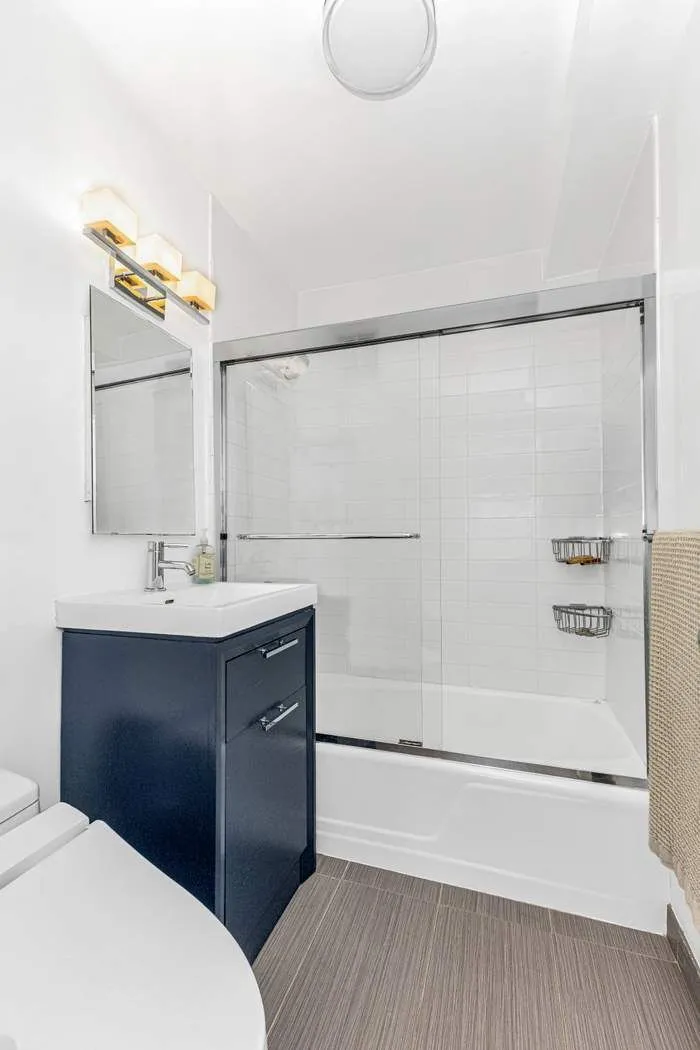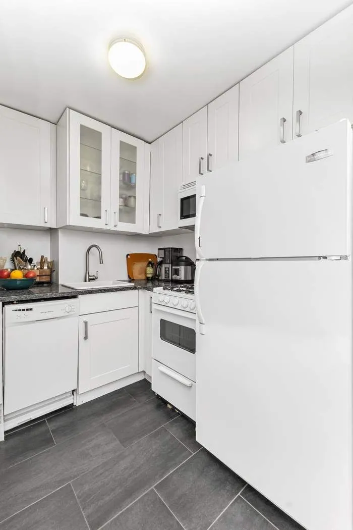 The apartment has a stylishly renovated kitchen with sleek finishes, dishwasher and ample counter space, perfect for both quiet nights and casual entertaining. The bathroom has also been tastefully updated with modern fixtures and a clean, contemporary design. Storage will never be an issue — this home boasts an abundance of closet space, including a walk-in closet at the entryway and multiple additional closets throughout.