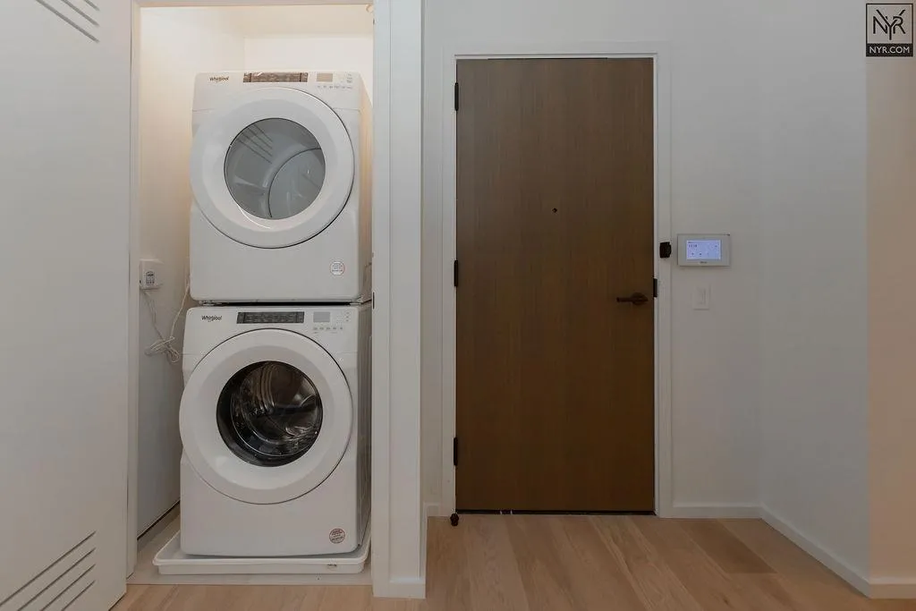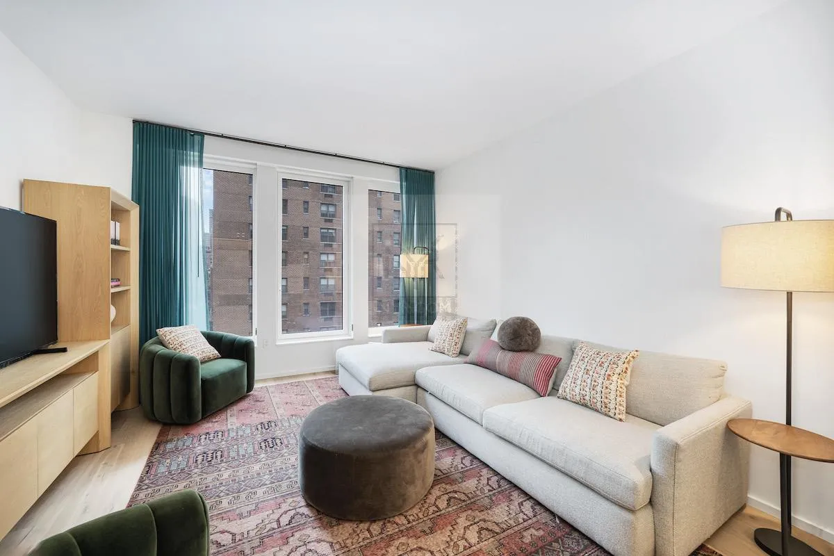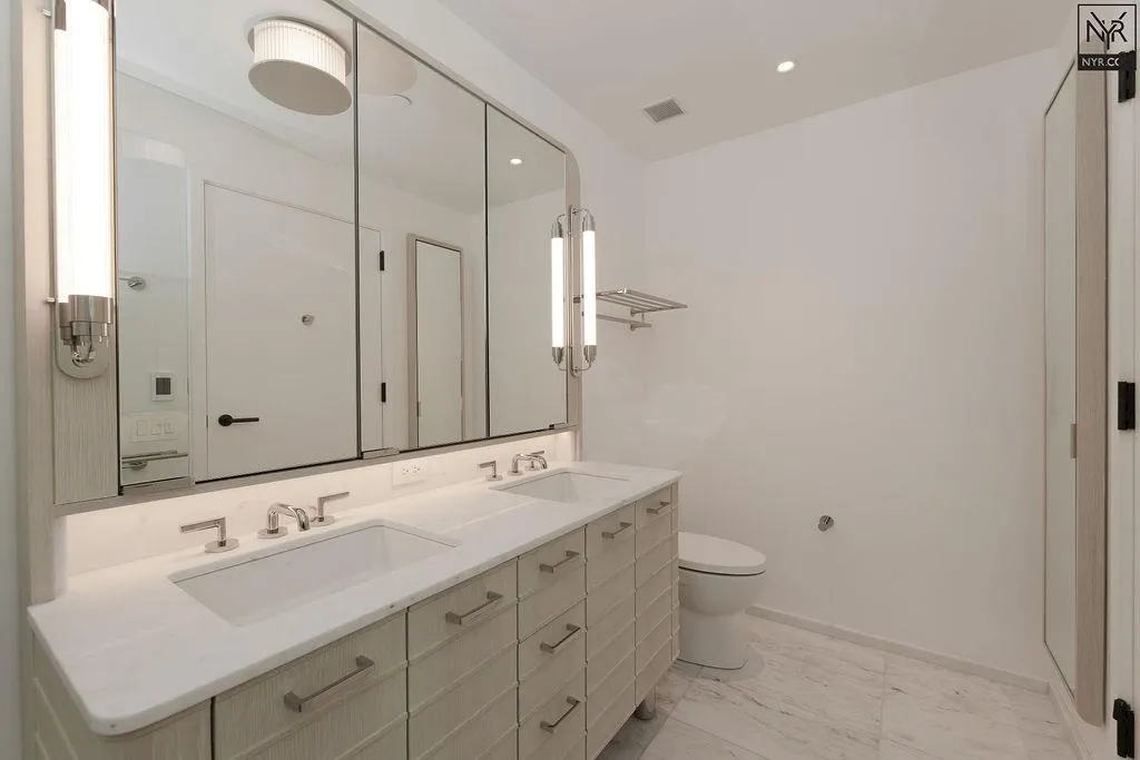 Residence 3B is a generous, east-facing two-bedroom apartment flooded with natural light. The intuitively designed living and dining areas showcase a seamless flow, complemented by 10-foot ceilings capturing the refreshing morning sunlight. Oversized windows and European white oak floors emphasize a spacious home, leading to the thoughtfully appointed kitchens. Contemporary finishes by INC Architecture & Design, including cerused oak cabinetry and bespoke Mont Blanc quartzite countertops, provide an inviting setting for entertaining as well as everyday living. Mindful lighting adds warmth and a full suite of Miele appliances ensures premium-caliber performance. The primary bedroom offers an oasis of pure comfort and privacy, replete with tremendous closet space. With hand-selected materials and considered technology, the en-suite primary bathroom is a serene space for relaxed rejuvenation. Honed Bianco Oro marble and cerused oak lay a luxurious foundation. Radiant-heated flooring and soft ambient lighting with polished nickel fixtures complete the ensemble. The secondary bath offers a custom cerused oak vanity, Bianco Oro marble and fluted porcelain tiled walls. The apartment comes with a large licensed storage unit located in the cellar.
