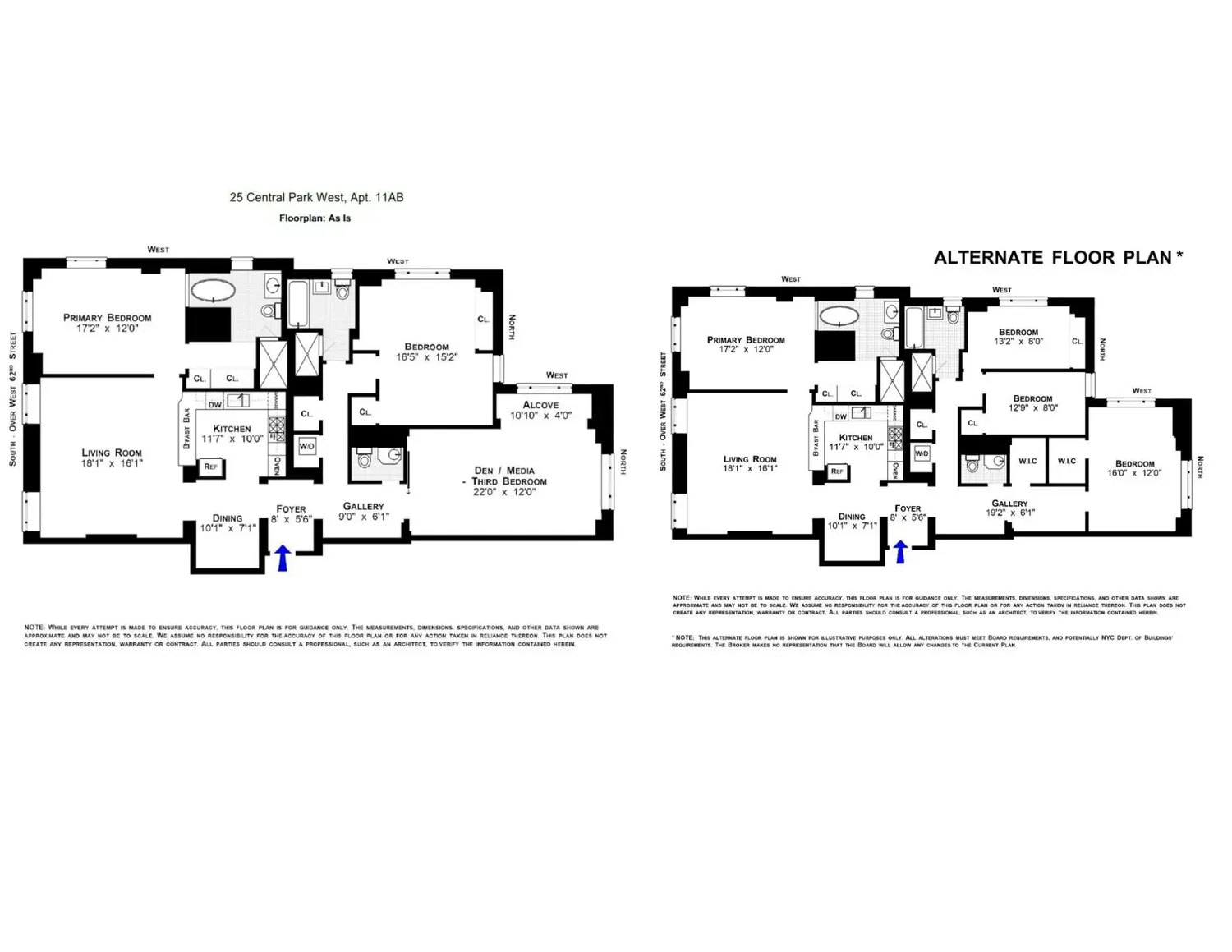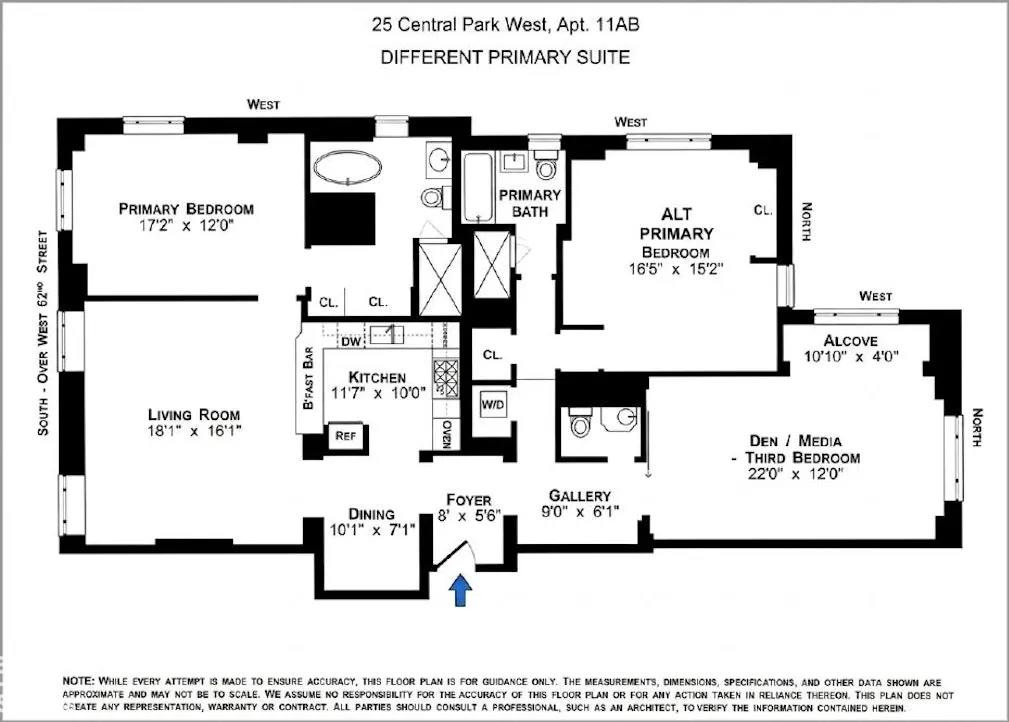 Welcome to residence 11 AB. This Combination home spans almost 2,000 square feet in excellent condition with walls of designer modern casement windows and modern thru wall A/C units . A Modern chef's kitchen plus renovated & updated bathrooms and this large gracious space awaits you and your guests with a brand new resident amenity space just completed in 2025! Move right in to 11AB built for social space living where the party is at your place. Originally, 3-4 bedrooms now set up as two Living rooms, 2 Bedrooms, 2.5 baths, a private washer dryer and a stunning & social inspired kitchen. The kitchen features quartz counters with Sub Zero, Wolfe, and Miele appliances and pretty custom lacquer cabinets. There are incredible crown moldings and brand new 10-inch oak flooring which has been added throughout the home. The primary bedroom features an ensuite bathroom with an architecturally stunning stand-alone soaking tub, double steam shower (complete with jets) and a dressing area with custom built-ins too. There are 2.5 baths and the half bath has a modern high-end fabulous groovy retro design. In addition to the dining area in the oversized almost square 18x16 Living/Dining area there is a separate breakfast nook off the kitchen for morning coffee or possible flex home office space ! There is a second living /social area on the other side of the condo home originally, a library now used as a home office and guest space and more - since there are sliding doors it's an instant flexible 3rd bedroom too! There is also a private washer dryer and there are three exposures with incredible walls of glass windows towards the garden and trees of 15 Central Park West 11th floor terrace. At almost 2000 sf there is lots of room to roam in 11AB.