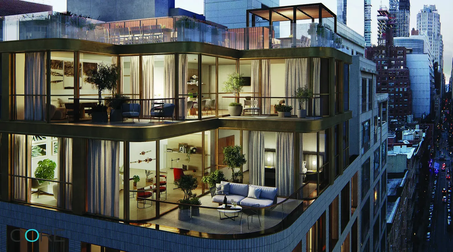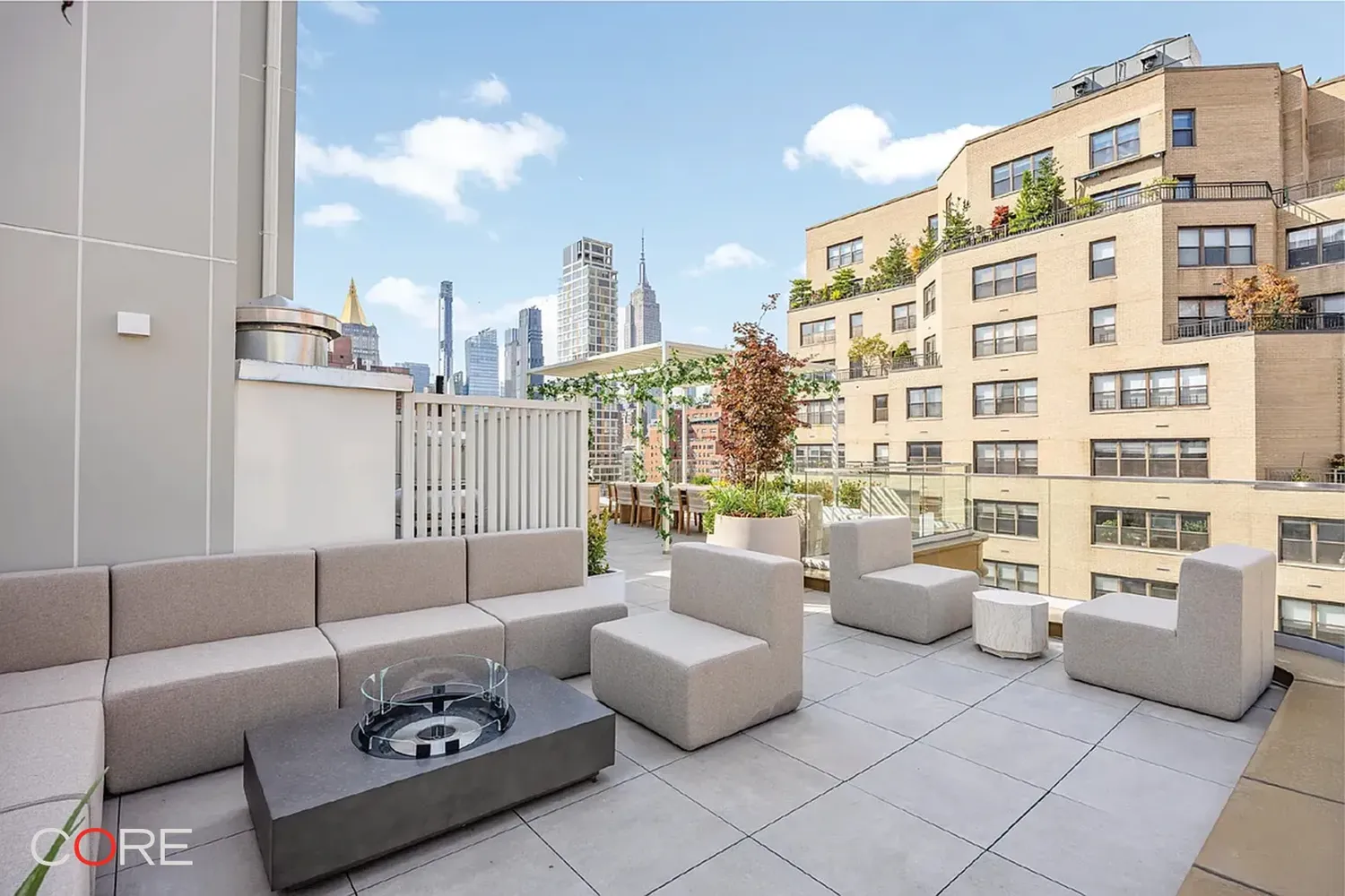 Penthouse B is a spacious and airy two-bedroom sanctuary with expansive private outdoor spaces. Natural light pours through floor-to-ceiling oversized windows, enhancing the spacious ambiance. A private terrace extends your living space, while an exclusive rooftop retreat offers a secluded escape with open skies. The open kitchen is a culinary masterpiece, featuring pristine marble countertops, a striking backsplash, and a spacious island framed by sleek white lacquer cabinetry. Integrated high-end appliances, including a Thermador refrigerator and Bosch dishwasher, ensure a seamless cooking experience. Thoughtfully designed for modern living, this exceptional residence is equipped with central air conditioning, an in-unit washer and dryer, and a smart entry lock for ultimate convenience.