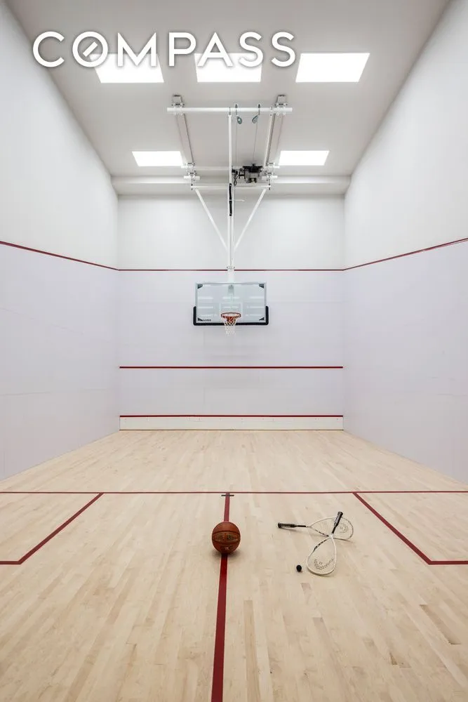 Residents enjoy a 75-foot saltwater lap pool, fitness center with Pilates reformers, landscaped rooftop terrace with outdoor cinema and separate grilling areas, regulation-size squash court with basketball hoop, private dining room with catering kitchen, music room, children’s playroom, club room and pet grooming station.