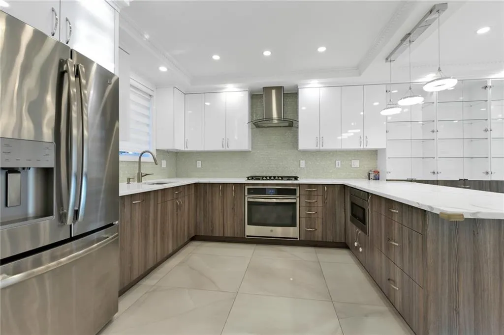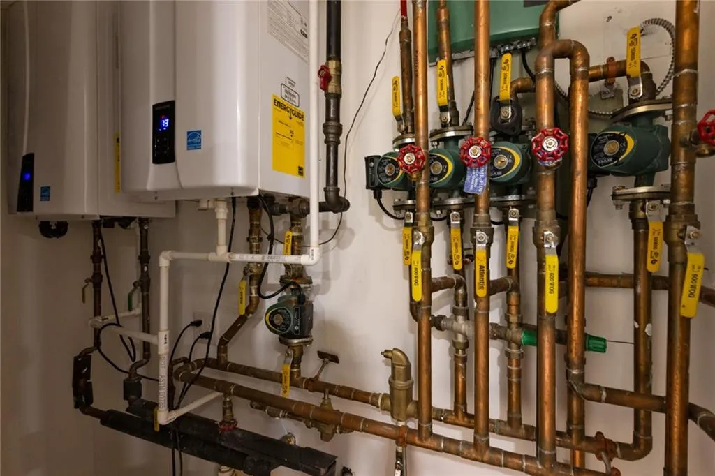 This European-designed home showcases heated floors on the first level and basement, hot-water European style radiator heat on the second floor, split unit modern air conditioning, tankless boiler and water heater, and designer crown-molded ceilings throughout. Every detail reflects master craftsmanship and modern comfort.