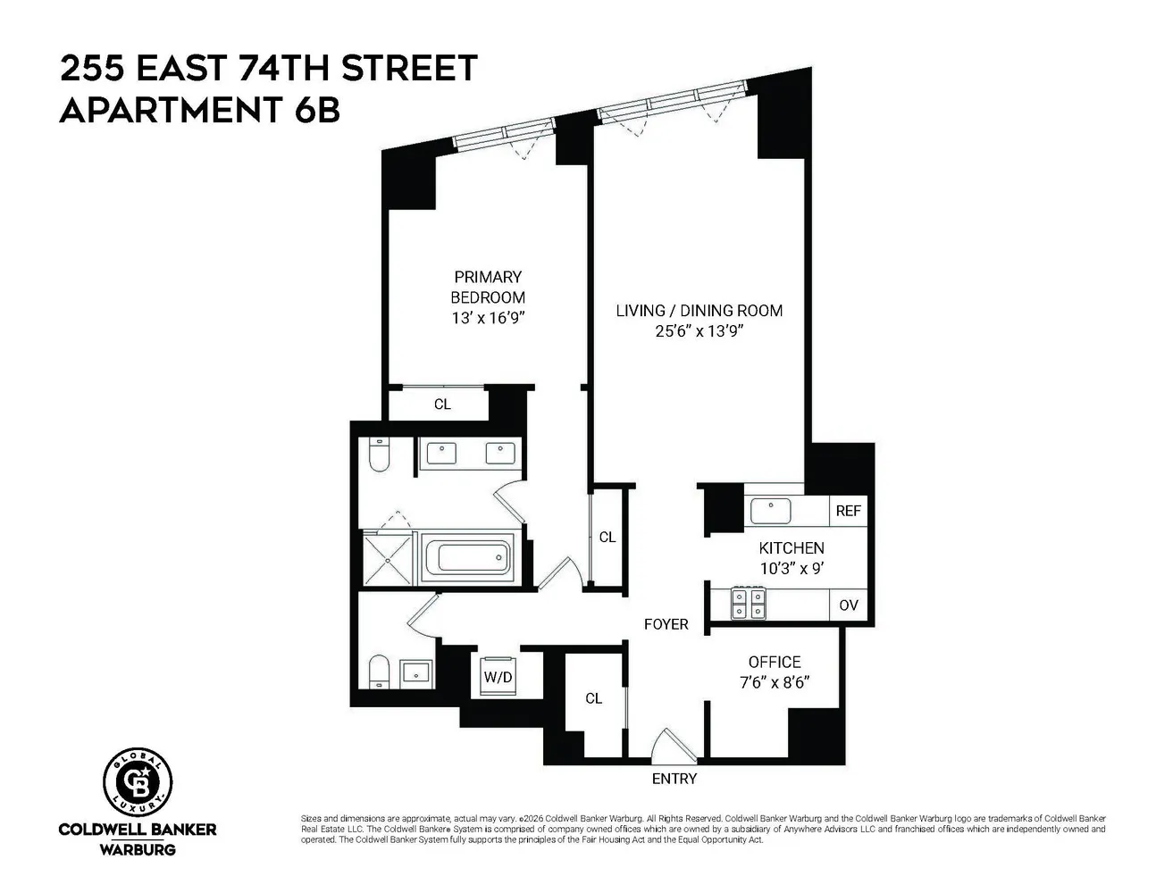 Residence 6B at 255 Εast 74th Street is a rare offering ‐ a 1,230-square-foot one-bedroom plus home office with 1.5 baths in one of the Upper East Side's premier full-service condominiums.
