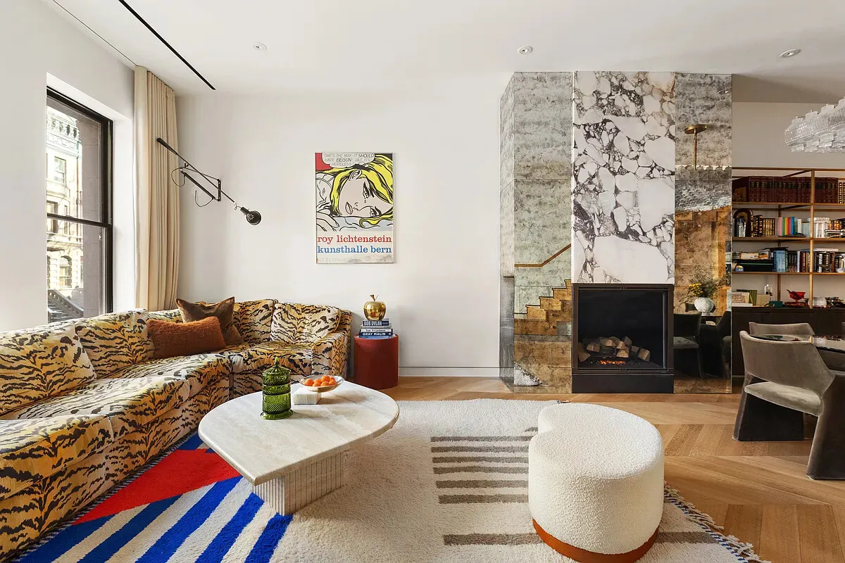 Grand proportions, soaring ceilings, and abundant natural light define the interiors, which unfold across multiple levels connected by an elevator adorned with Italian terrazzo. Thoughtfully designed living and entertaining spaces feel both expansive and inviting, featuring ultra-luxury finishes and a seamless indoor-outdoor flow to multiple terraces, a south-facing garden, and a finished rooftop retreat.