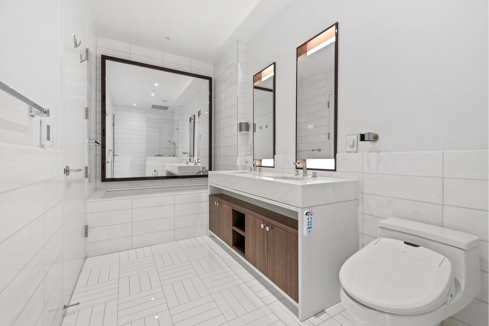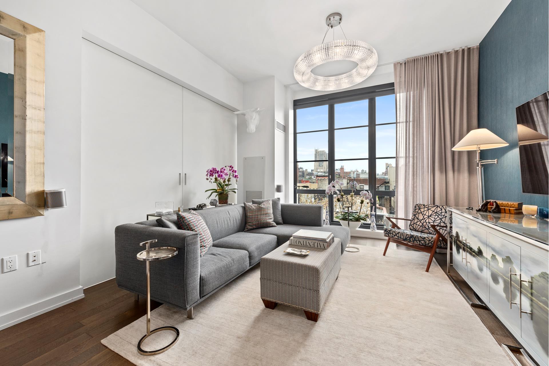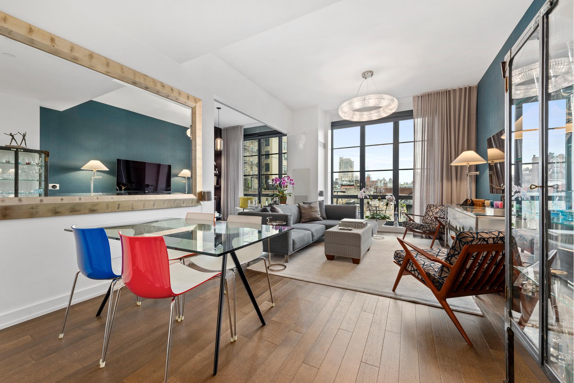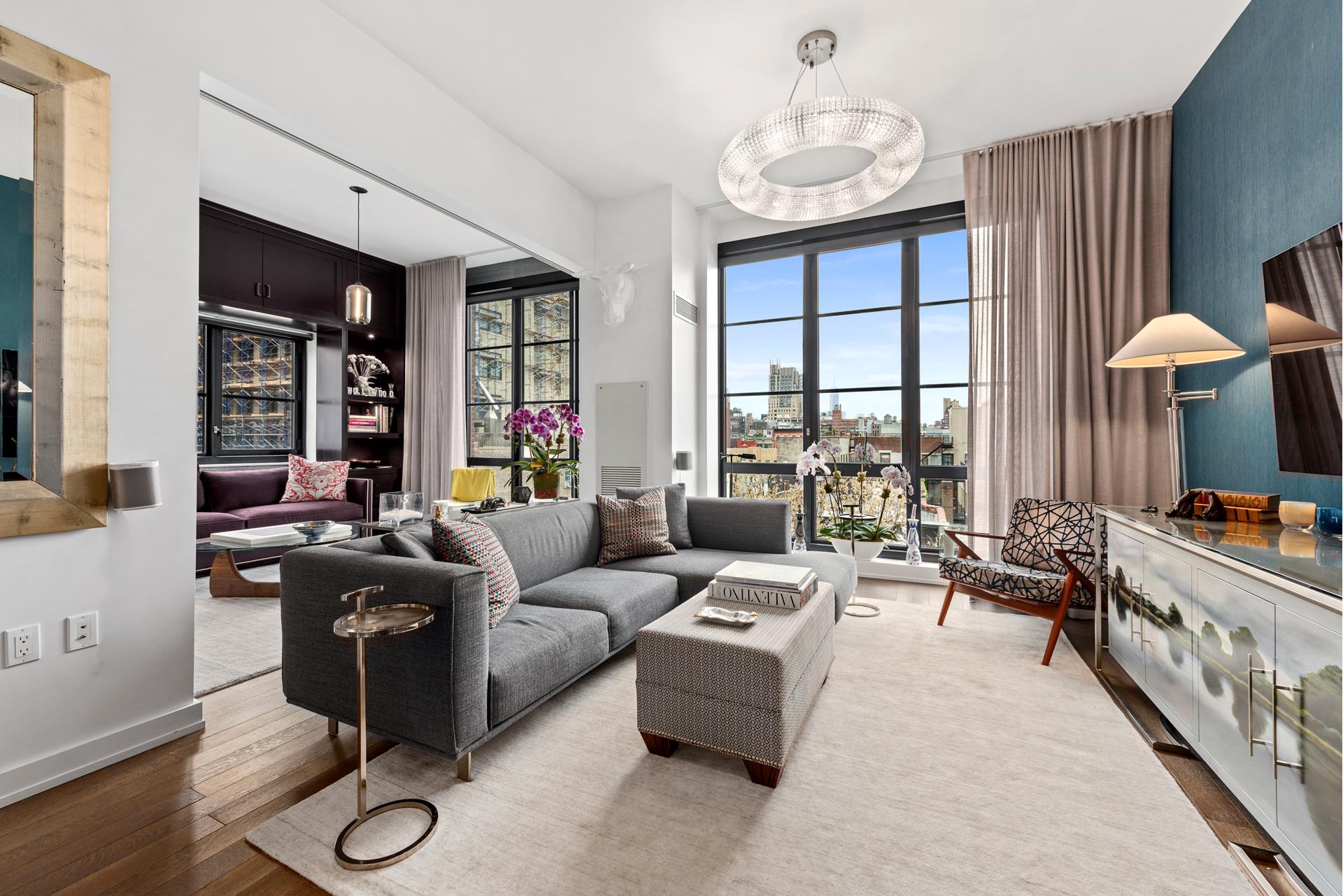 Perched just above the treetops and with stunning open views of the Freedom Tower, this spacious two-bedroom (2BR) two and a half bathroom (2.5BA) aerie awaits you in one of the premier luxury condominiums in Chelsea.