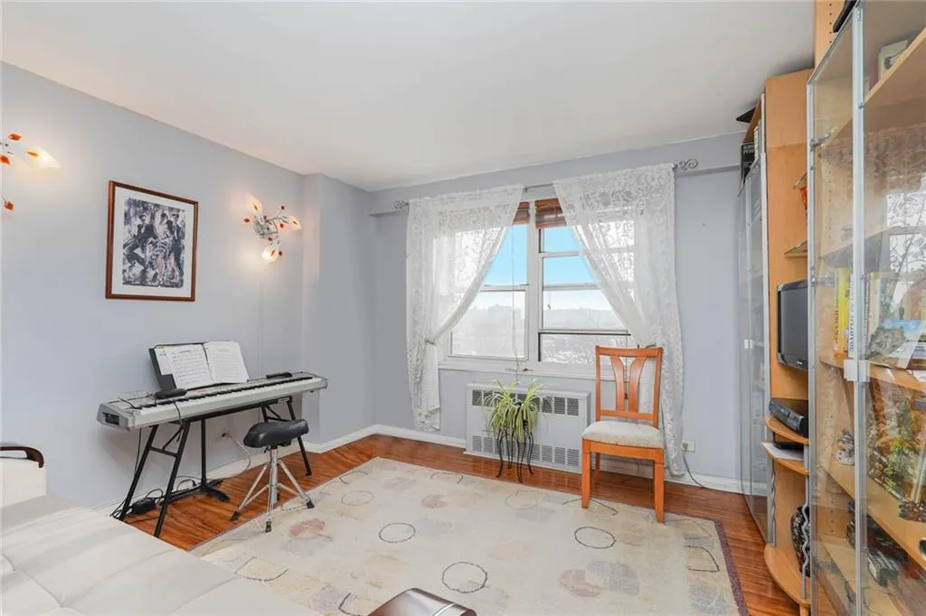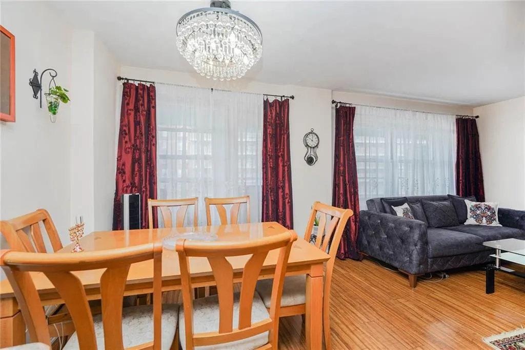 Welcome to Waterview Towers, located in the Bath Beach section of Brooklyn. This beautifully updated 2-bedroom, 1-bathroom coop is located on the 8th floor of a 16 story building. This stunning corner apt. offers a blend of modern style and comfort. Enjoy breathtaking views of the iconic Verrazano Bridge and stunning sunsets from your own home, all while basking in an abundance of natural sunlight that floods every room. The spacious living areas are complemented by stylish laminate flooring throughout, adding warmth and charm to every room. The updated kitchen features sleek, wood cabinets, elegant quartz countertops, a tasteful tiled backsplash and stainless steel appliances – perfect for cooking and entertaining. The updated bathroom offers a spa-like retreat, with elegant tiled walls, a modern vanity, and thoughtful design touches. Ample closet space is provided, with modern wood closet doors ensuring an organized and polished look. Move in ready. Amenities include on site live-in superintendent, card operated laundry room, community room, children's playground for tenants only (with key for entry), intercom security system, nighttime part-time security guard, wait list for parking(additional fee of $100 per month). Close to Calvert Vaux Park, schools, public transportation(express bus is across the street), nearby shopping (BJ's, Food Bazaar, Home Depot, Walgreens, Caesars Bay Shopping Center which includes Target, Kohl's, Best Buy, Five Below, Skechers), Verrazano Sports Complex, Crunch Fitness. Monthly maintenance is $1057.70, which includes electric, gas, heat, water. Additional fees: $30 per air conditioner, $10 dishwasher per month. Monthly assessment of $198.50 for brick and terrace work. Sublets must be approved by the board of directors. Must live in the apt minimum of one year. Flip tax $9,925 paid by seller. Minimum down payment 20%. Cross streets 26th Ave and Bay 44th Street.