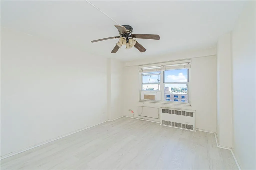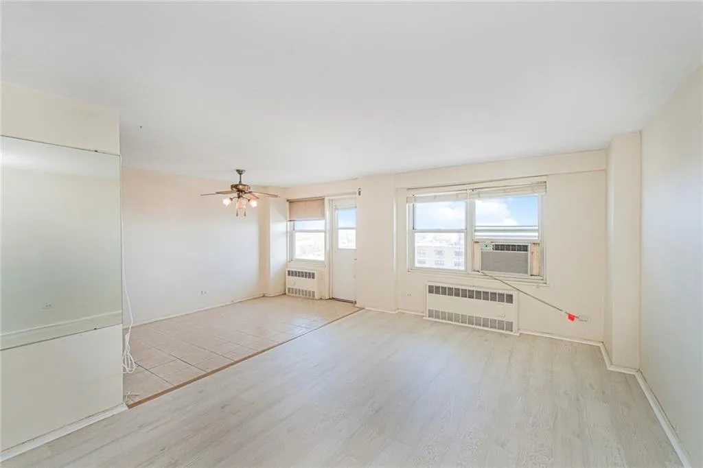 Welcome to Waterview Towers located in the Bath Beach section of Brooklyn. This beautiful 9th floor, one-bedroom, one-bathroom coop offers a perfect blend of comfort and style, with breathtaking views of both Manhattan and Coney Island. The spacious living room is flooded with natural light, creating a warm and inviting atmosphere. The home features a beautifully renovated kitchen with elegant wood cabinets and stylish tile floors, perfect for culinary enthusiasts. Laminate flooring has been recently added to the living room and bedroom, providing a cozy, comfortable feel, while the bathroom has original charm with some updated touch to include a new vanity, light fixture, and a ceiling fan for added convenience. This move-in-ready unit is ideal for anyone looking to experience both modern living and amazing vistas in a prime location. Amenities include: On site live-in superintendent, card operated laundry room, community room for parties and meetings, children's playground for tenants only (with key for entry), intercom security system, Security guard in the evenings, wait list for parking (additional fee $100 per month), Close to Calvert Vaux Playground, grocery store, public transportation(express bus is across the street), Shopping at BJ's, Food Bazaar, Home Depot, Caesar's Bay Shopping Center (which includes Target, Five Below, Kohl's, Best Buy, Bob's Furniture, Skechers), Adventureland Amusement Park, Verrazano Sports Complex, Crunch Fitness. Monthly maintenance 847.25. Additional $30 fee per air conditioner per month, $10 dishwasher per month. Sublets permitted after one year with board approval. Flip tax $7,950 paid by seller. Minimum down payment 20%. Starting 7/1/25 there is a monthly assessment of $159 for Local law 11 brick and terrace work.