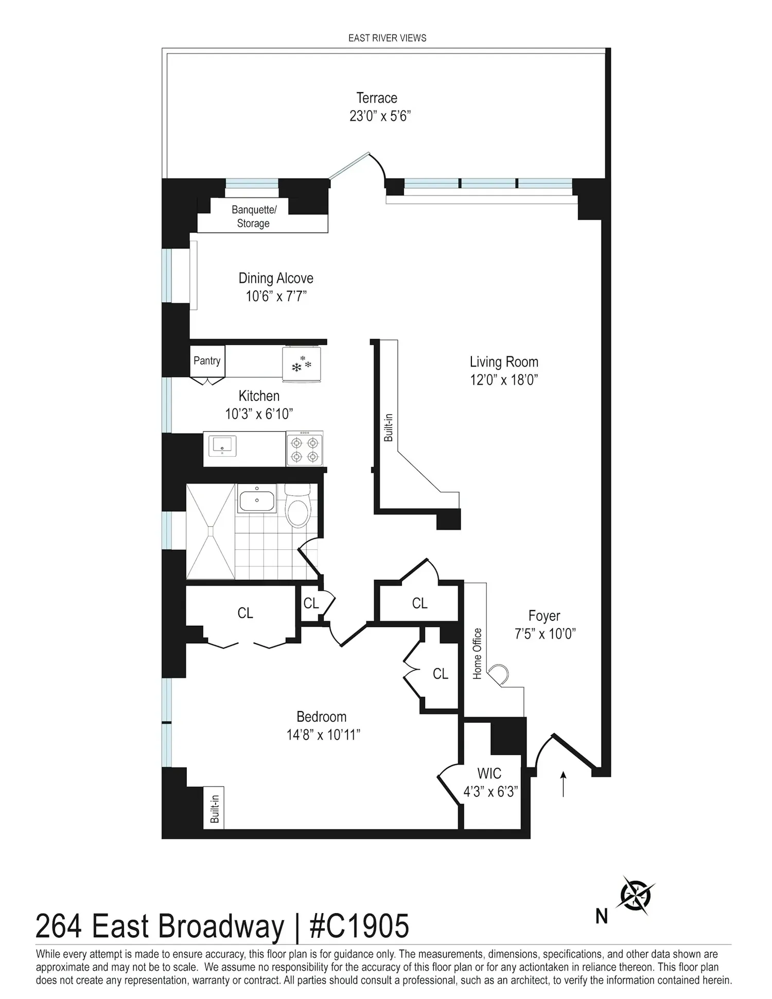 beyond! Enter via a gracious foyer and be ushered into the expansive living room featuring an entire wall of southeast facing windows opening to your own private balcony that runs a full width of the apartment! A lovely dining alcove off the living room, l offers sunny double exposures and a custom window seat. Windowed kitchen in white cabinetry complemented by stone counters and vintage NYC style hexagonal black and white floor tiling. The bath, also windowed, is done in