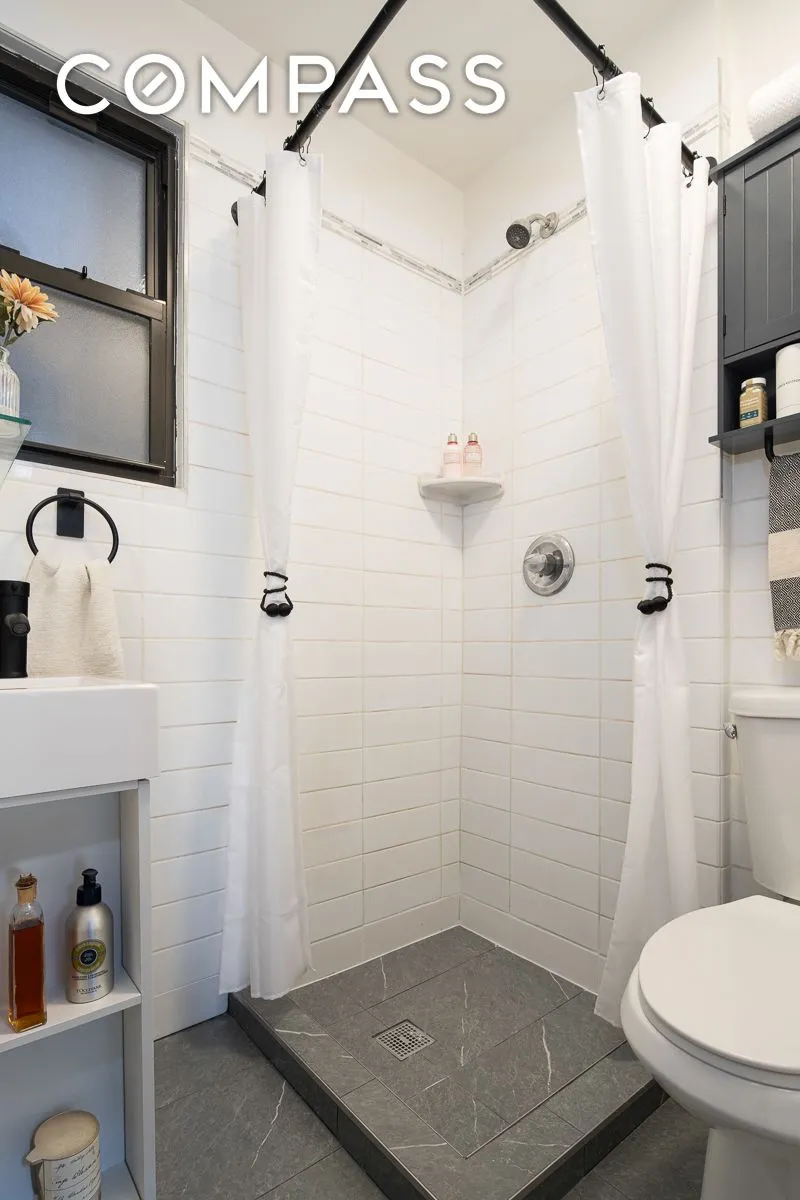 The windowed bathroom has been thoughtfully renovated. Natural light and fresh air in a bathroom is one of those small New York luxuries that makes a surprisingly big difference.