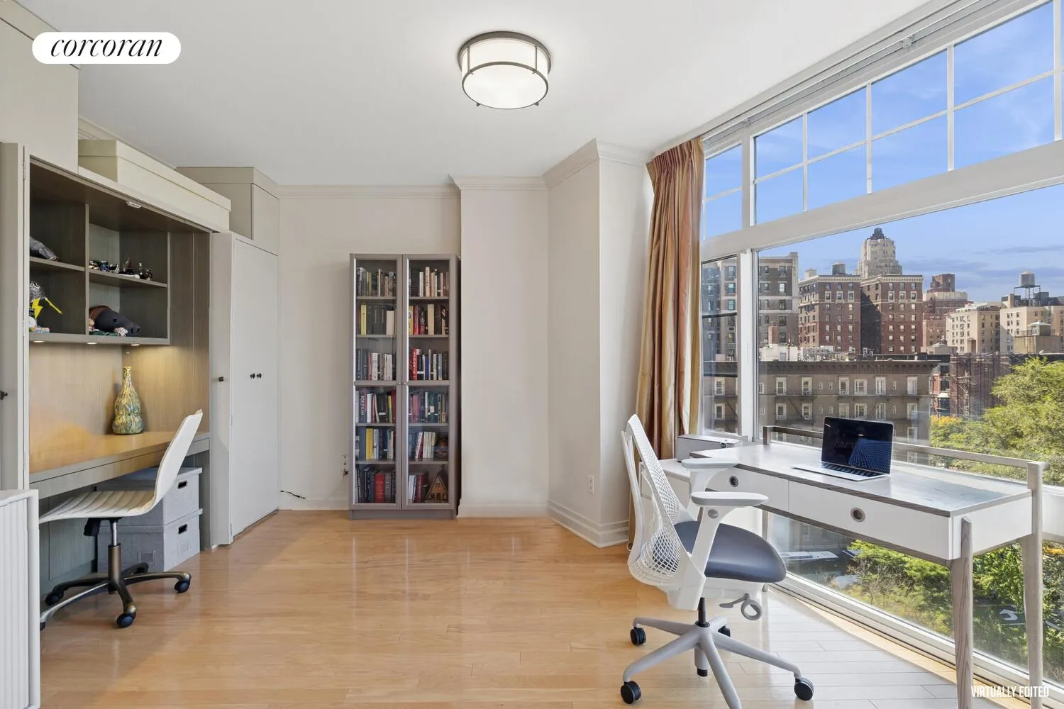 Located at Broadway and 107th Street in a Flatiron inspired building designed by Randy Gerner, this is one of the building's most sought after apartments. This unique home features a spacious 34 foot living room, 3 or 4 bedrooms, 2.5 Waterworks baths including a recently renovated powder room, floor to ceiling windows, dining room/den, newly renovated cook's kitchen, high ceilings, vented washer/dryer, private storage bin (no charge) and individually controlled heating and A/C in every room. Both the grand scale living room and adjacent dining room or den have direct views of Straus Park.