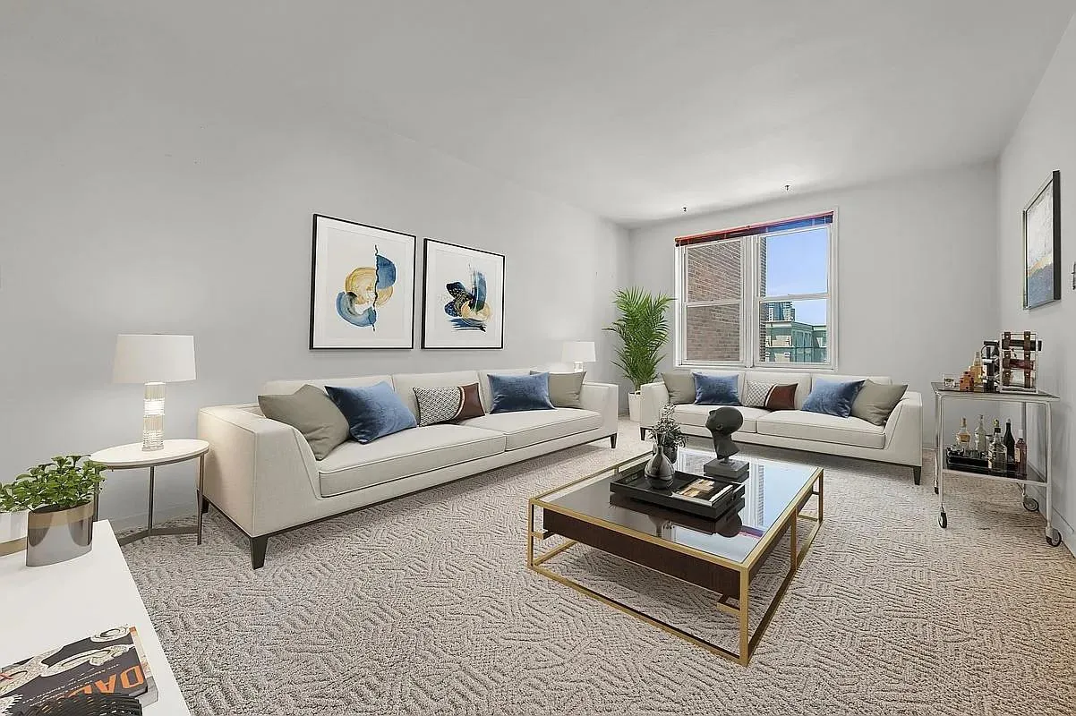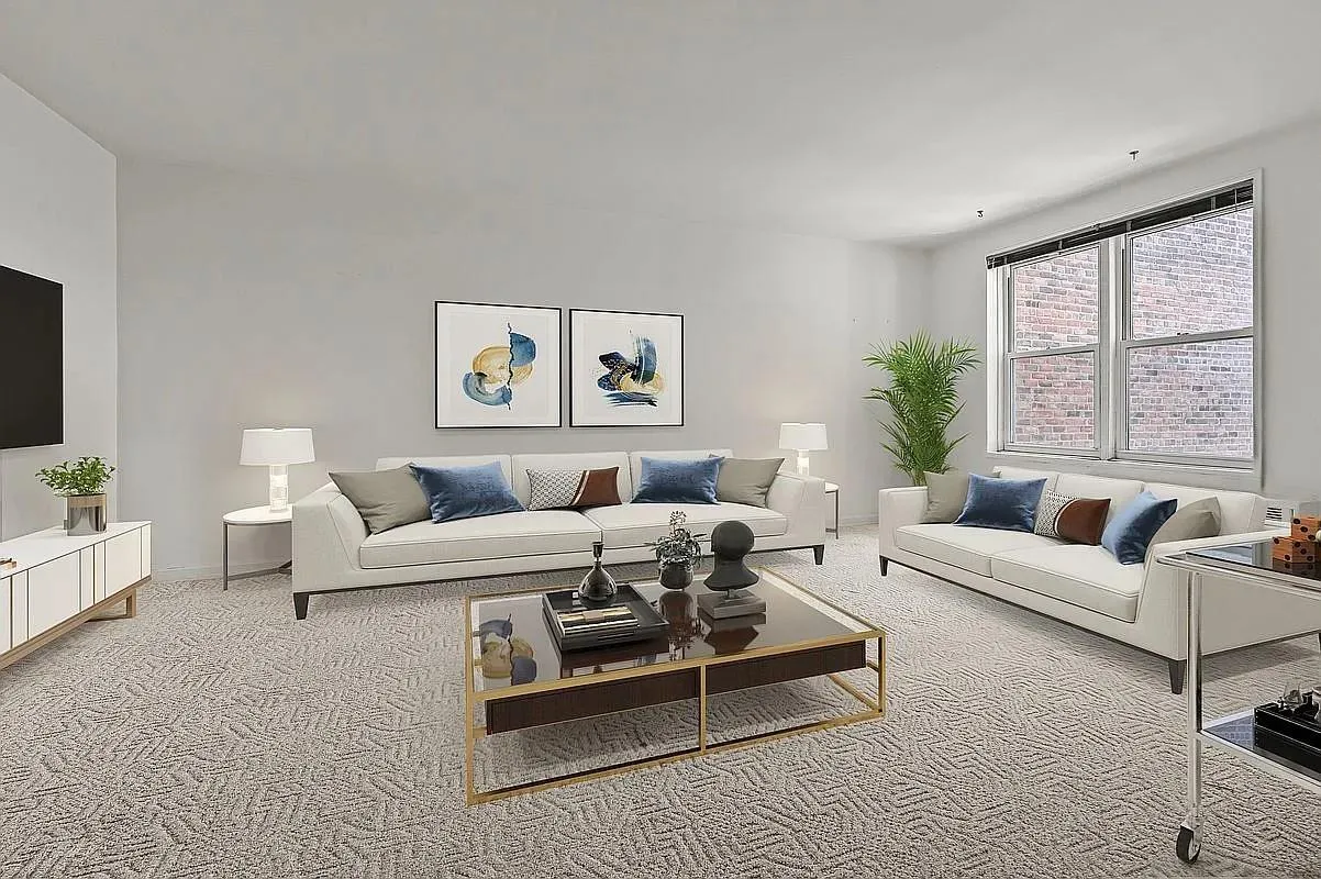 Enter through an airy foyer large enough for a bar, small office, or a simple grand entry. A coat closet here is the first of many storage options. Beyond the foyer, the space flows into an oversized living room — comfortable for hosting, unwinding, or creating multiple unique layouts thanks to its large size.