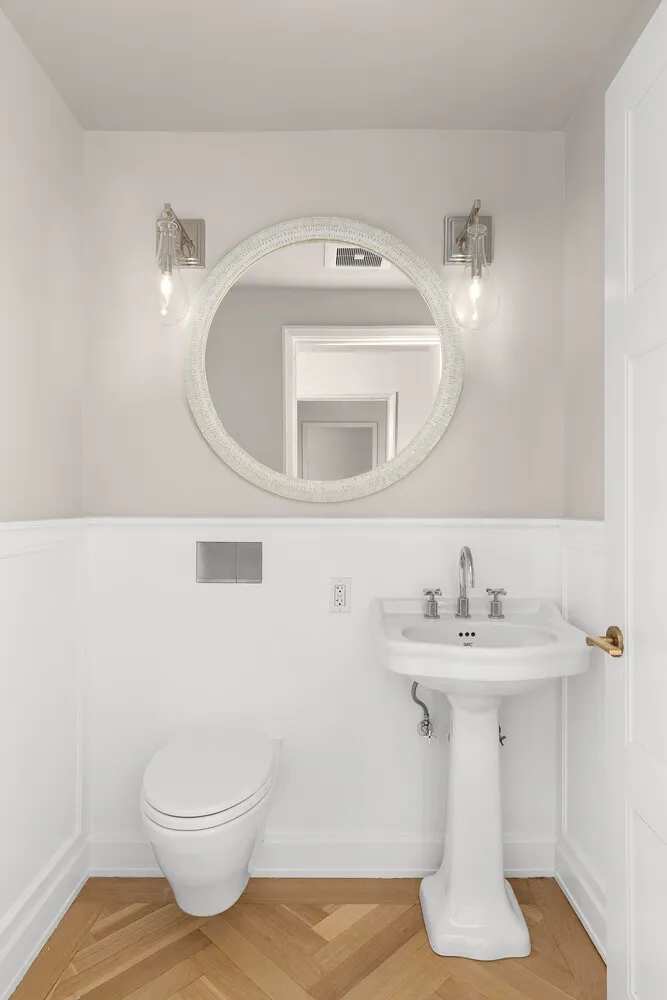 Other enviable qualities of this home include beautifully refinished herringbone wood floors, arched oversized windows that face South for all-day sunlight, barrel-vaulted ceilings, radiant heated bathrooms, and separate powder room and laundry room.