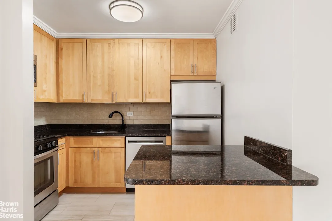 Fabulous, sun‐drenched one-bedroom with coveted southwest exposure, filling the home with beautiful natural light throughout the day. The kitchen stands out with light wood cabinetry, striking black granite countertops, and stainless steel appliances. A stylishly updated bathroom features modern tile for a fresh, clean look. Recessed lighting and gleaming hardwood floors add warmth and polish, creating a cozy yet sophisticated feel. Generous closet space makes this home appealing as it is charming.