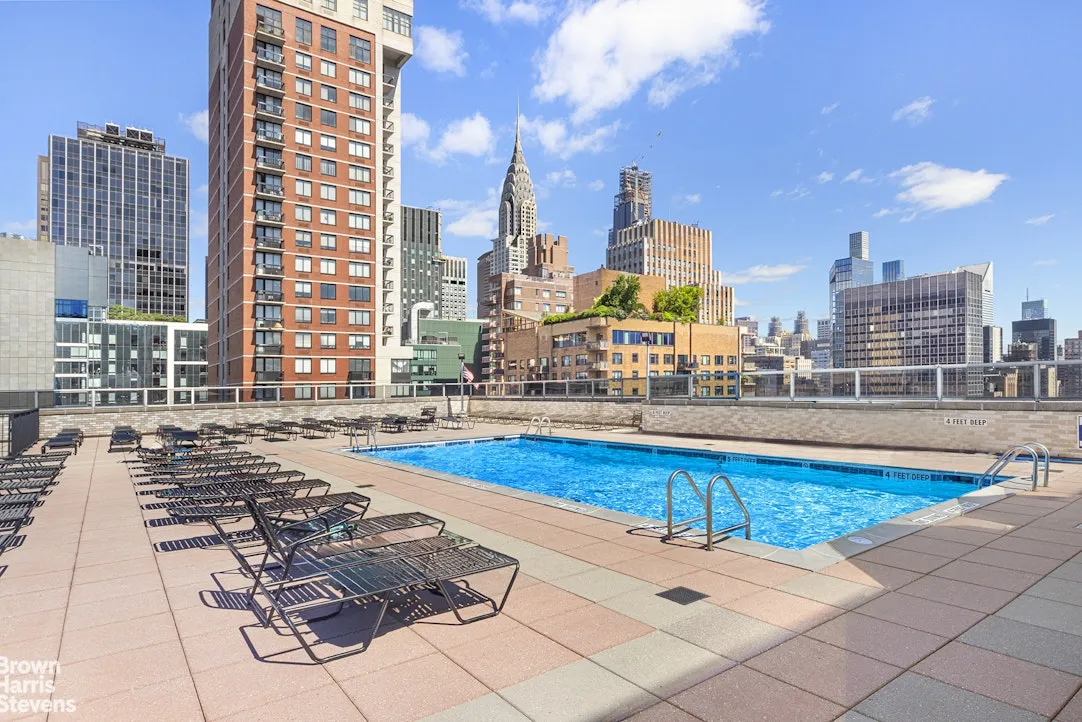 Luxury & Convenience. This white-glove building offers an exceptional lifestyle with: 24-hour doorman & concierge services, Laundry on every floor, fitness center & sauna, residents lounge, landscaped rooftop decks with stunning views, outdoor pool, valet service & bicycle room. On site garage. Ideally located near markets, shopping, dining, and Grand Central Station, The Churchill provides seamless access to transportation. The building permits subletting, investors, co-purchasing, and pied-terre's, making it a versatile choice for buyers. Pet permitted there is a 40lb weight limit. Assessment $452.00 until 10/31/2026 Local Law 11