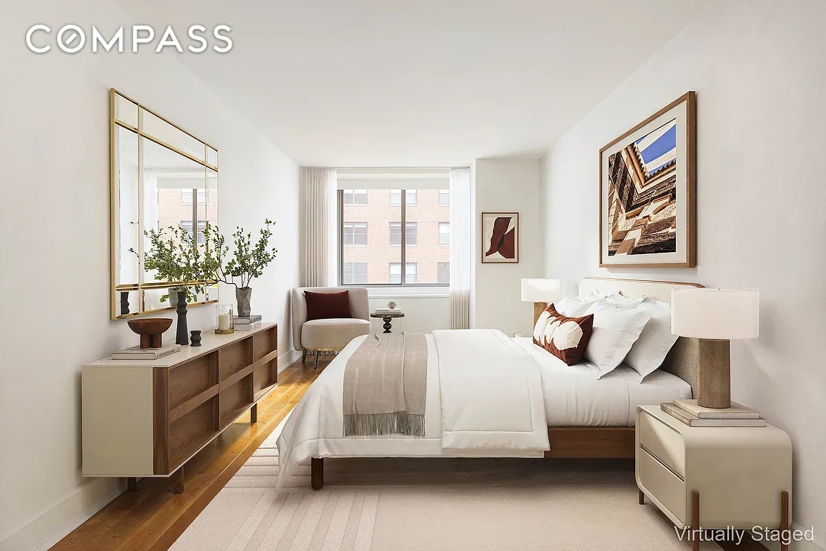 Welcome to Residence 6H, a spacious 857-square-foot, thoughtfully upgraded one-bedroom home with bright northern exposures and exceptional custom storage throughout. Oversized windows fill the apartment with natural light.