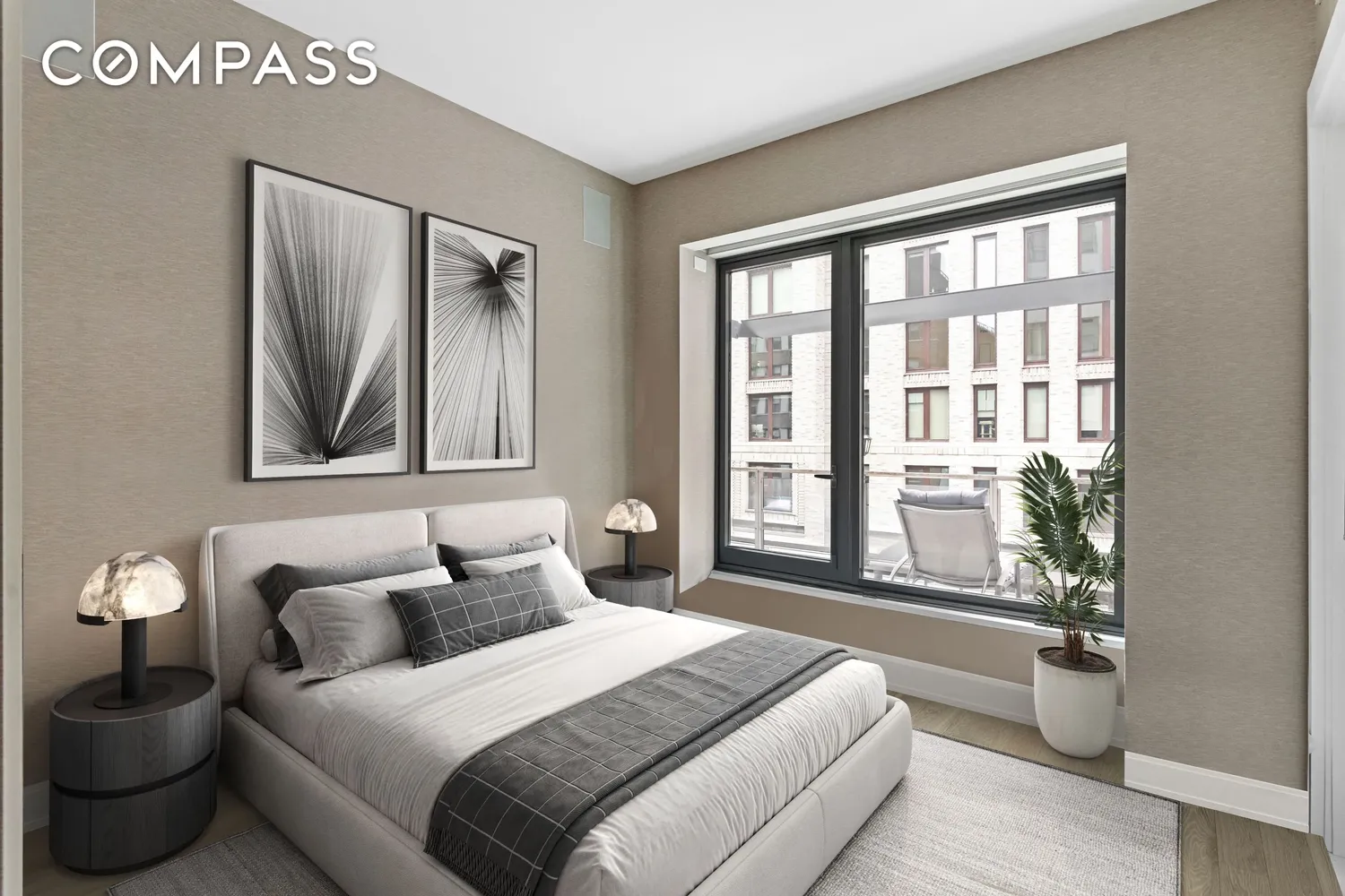The second en-suite bedroom and a powder room echo the same refined craftsmanship with Waterworks fixtures and elegant flooring. Every detail of this home has been curated for both comfort and sophistication, including a multi-zone climate system, motorized shades, and Bosch washer/dryer.
