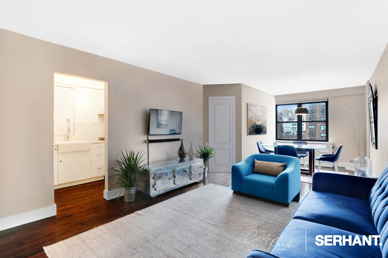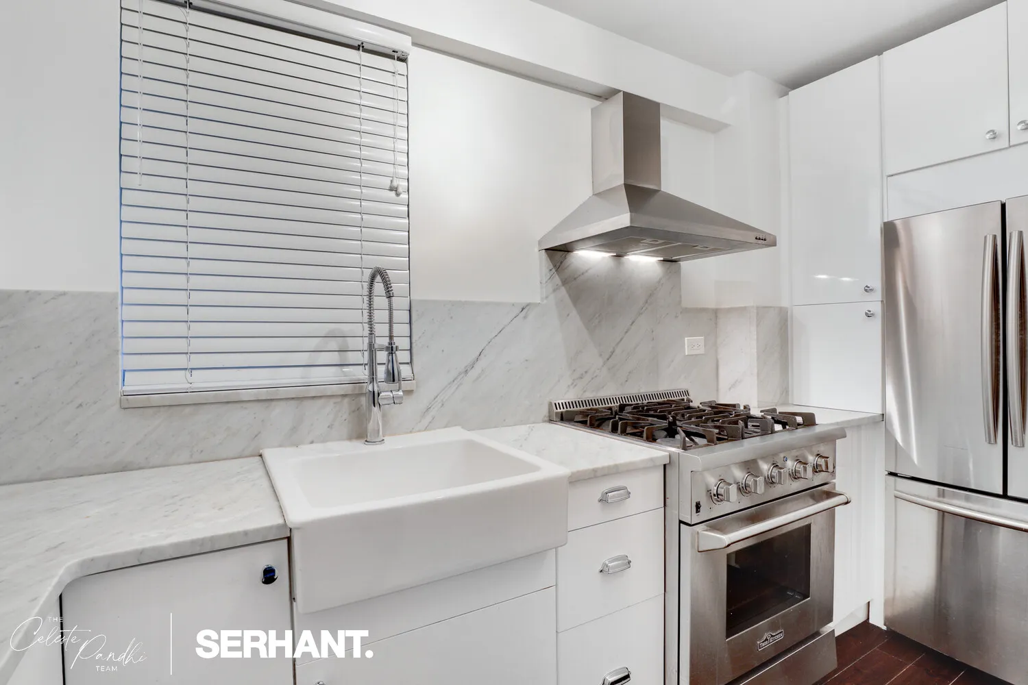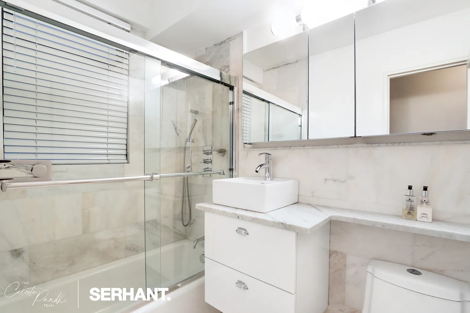 Large convertible two bed on the 8th floor with southern, eastern, and northern exposure offers tons of light and quiet primary bedroom. Enjoy a renovated, windowed kitchen that includes Carrera marble countertops, backsplash and full-size stainless-steel appliances including a dishwasher. The bathroom is also renovated and includes a window, marble, tub, and ample storage. Hardwood floors run throughout the apartment. The apartment features 5 large (2 walk-in) closets as well as a king size bedroom.