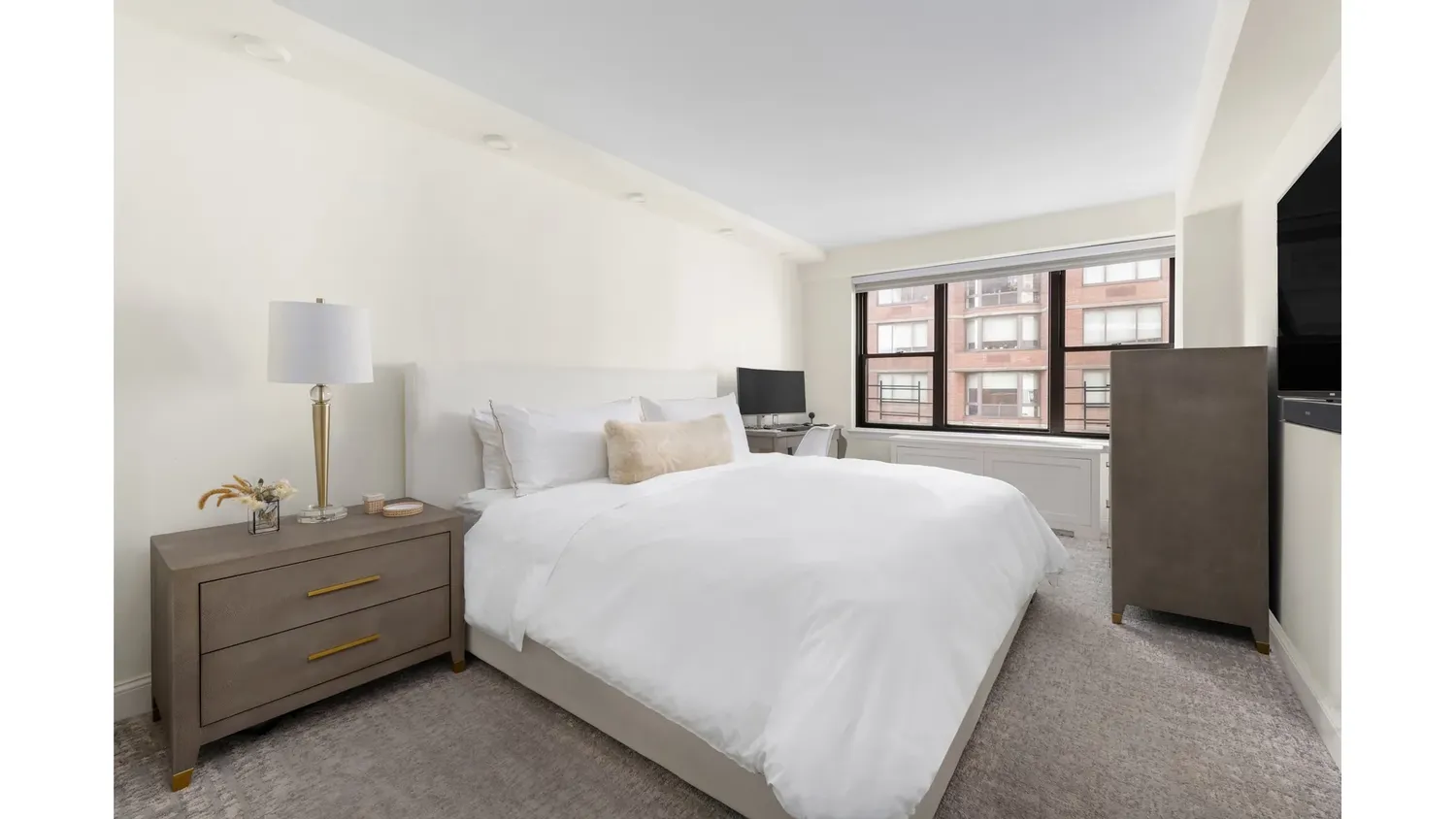 Residence 17B sits on a semi-private floor with јust three residences and enjoys excellent natural light throughout the day. As you enter the spacious living room, a striking wall of West facing windows showcases expansive, sunlit views. This home features an 11' x 12' formal dining room, with equally incredible views, which can easily be converted into a third bedroom or office. The windowed kitchen is equipped with Sub-Zero and KitchenAid stainless steel appliances, quartz countertops, and custom cabinetry, with additional counter space and storage extending into the living room.