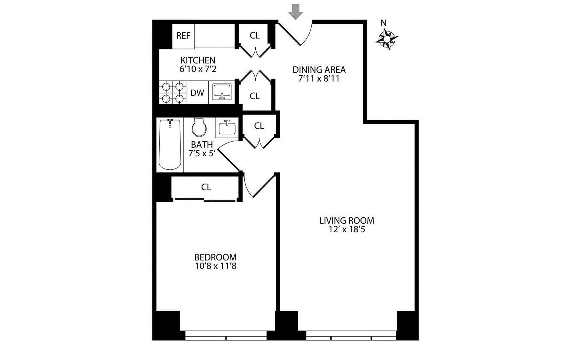 1 Bed / 1.0 Bath - / 600 ft² ($56 per ft² yearly)