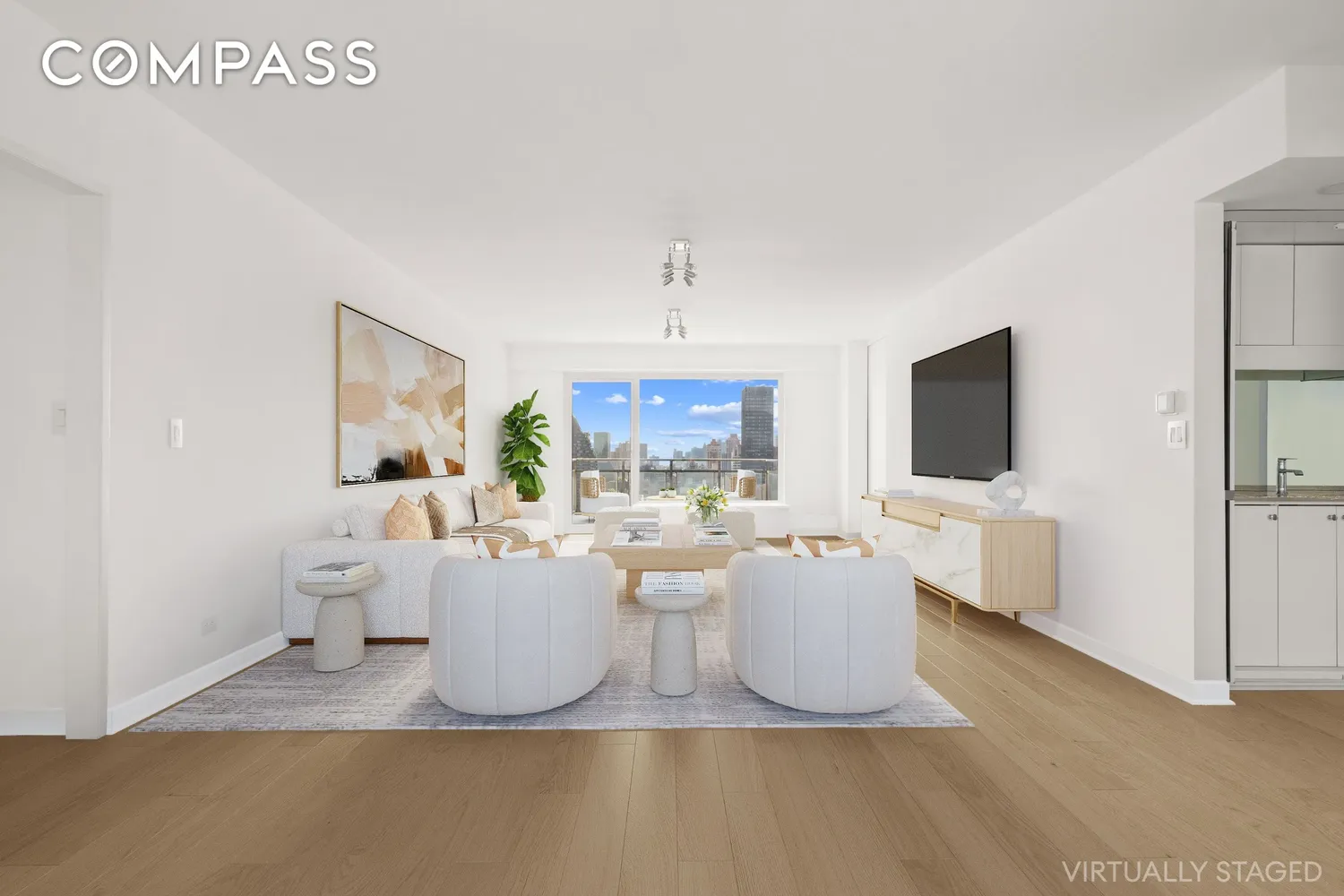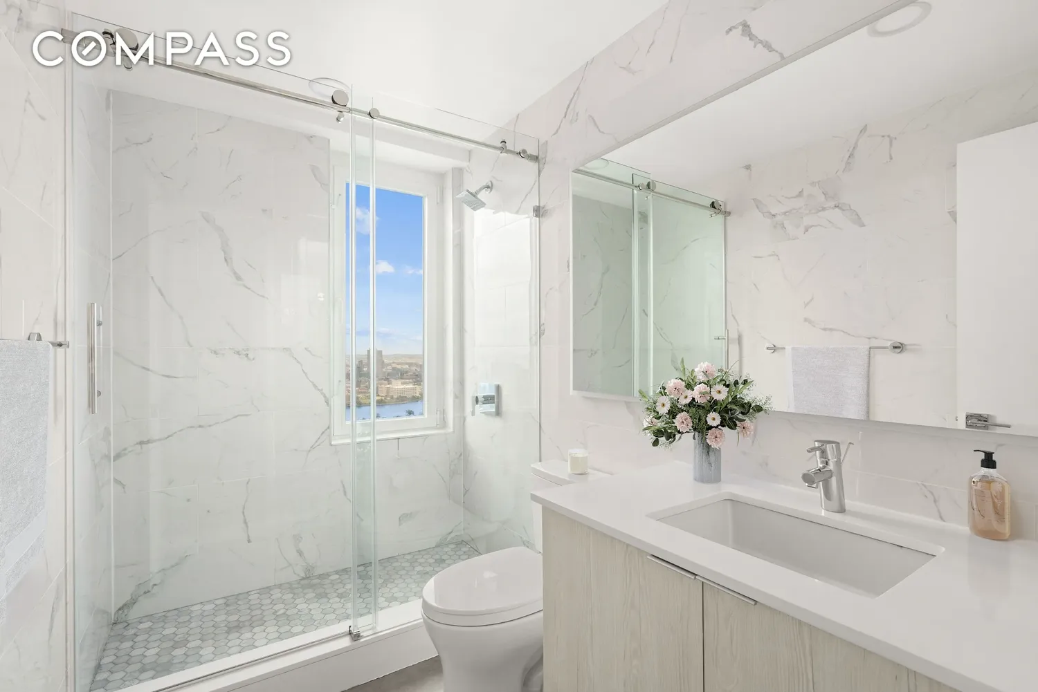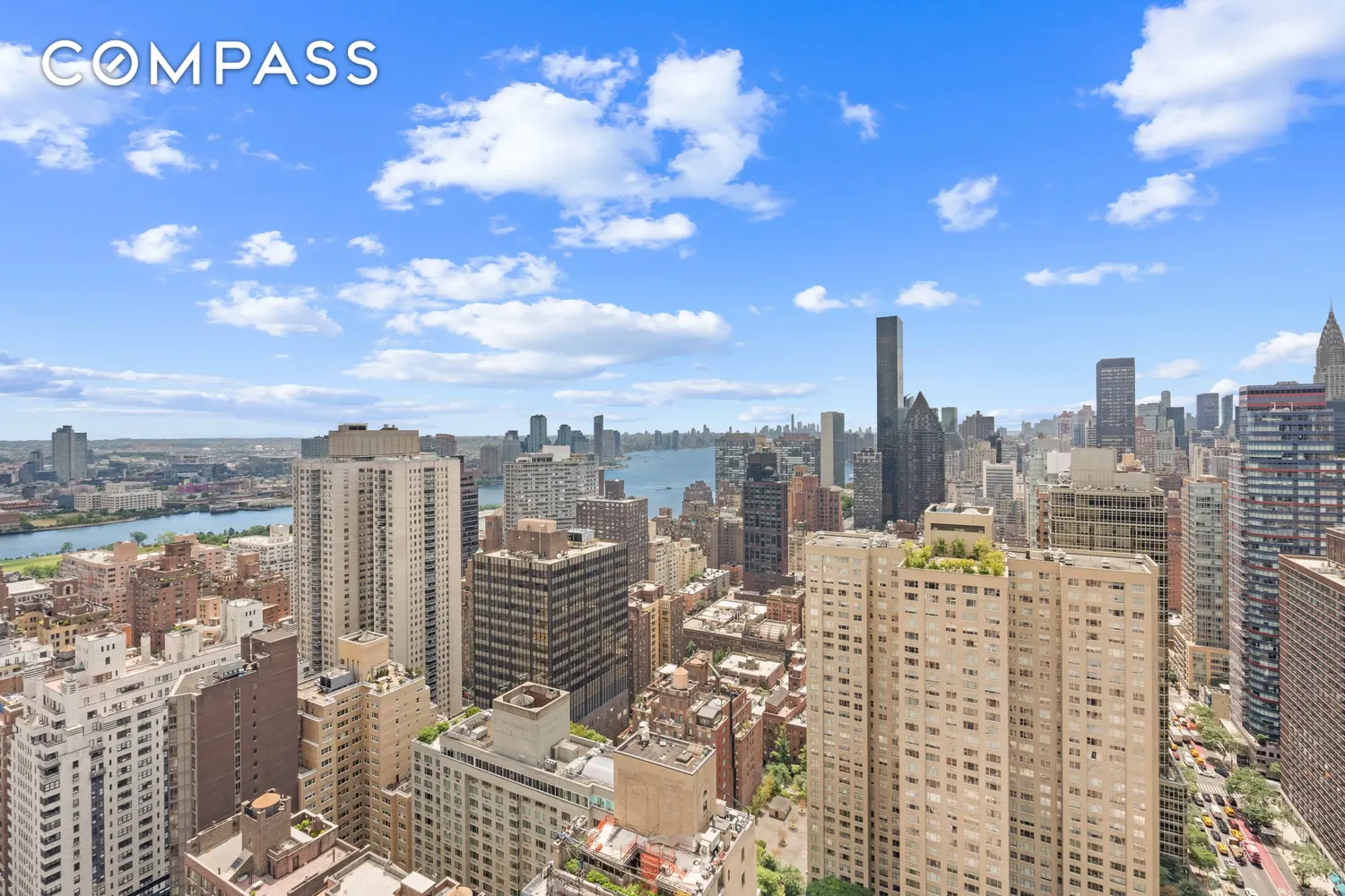 From the moment you enter through the front door, you will be blown away by the sweeping Southern, Northern and Eastern views of Manhattan's skyline and the East River. Views of Manhattan's most prolific buildings are right outside your window. You are welcomed by a spacious foyer that leads directly into the entertaining spaces. Sunlight pours into the oversized south-facing living room situated directly across from a huge formal dining room. You can enjoy the stunning Southern views on your private South-facing terrace off of the living room. The wet bar and private balcony make this home an entertainers dream.