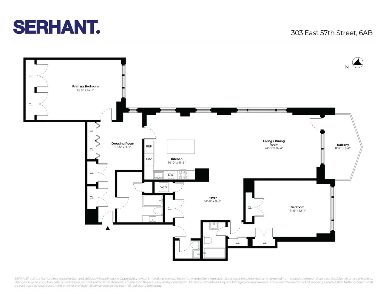 This expansive corner home offers the space and scale of a true luxury residence. Spanning approximately 2,000 square feet, Apartment 6AB features 2 bedrooms, 2.5 bathrooms, and a flexible floorplan that can easily be reimagined as a three-bedroom. With multiple exposures through oversized picture windows, the nearly 40-foot great room is filled with natural light and opens onto a private balcony overlooking 57th Street. The open kitchen with breakfast bar is outfitted with custom cabinetry, granite countertops, and quality finishes, blending functionality with timeless design. The winged layout provides complete privacy between bedrooms. The primary suite includes six closets, an en-suite bath, and a versatile dressing room or home office. The second bedroom also features generous closet space and its own renovated en-suite bathroom. Additional highlights include a formal foyer, in-unit washer/dryer, and refined details throughout.
