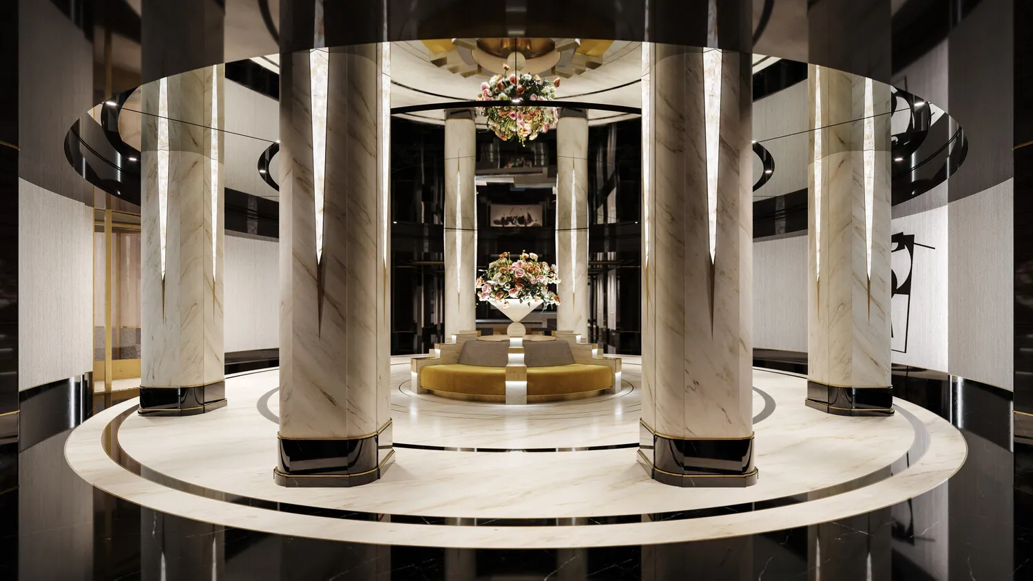 Designed by internationally acclaimed designer Jean-Louis Deniot, residences combine modern comfort with signature features such as a dedicated Concierge Closet and keyless entry with opulent details like ceiling coves, herringbone floors, oversized custom-paneled doors, spacious walk-in closets, and grand entry foyers with marble floors and brass inlays .