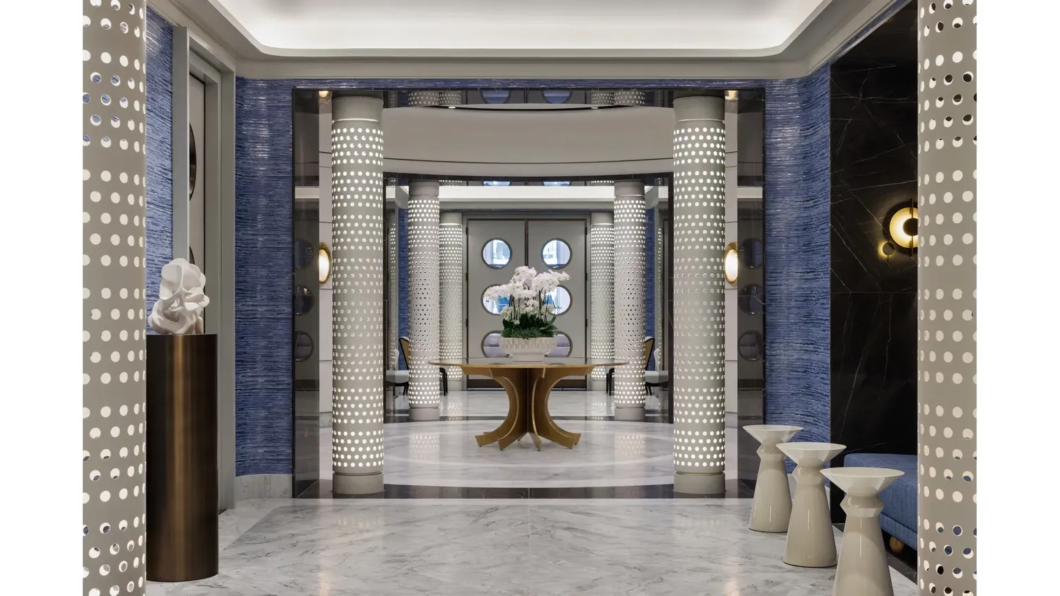 Designed by internationally acclaimed designer Jean-Louis Deniot, residences combine modern comfort with signature features such as a dedicated Concierge Closet and keyless entry with opulent details like ceiling coves, herringbone floors, oversized custom-paneled doors, spacious walk-in closets, and grand entry foyers with marble floors and brass inlays .