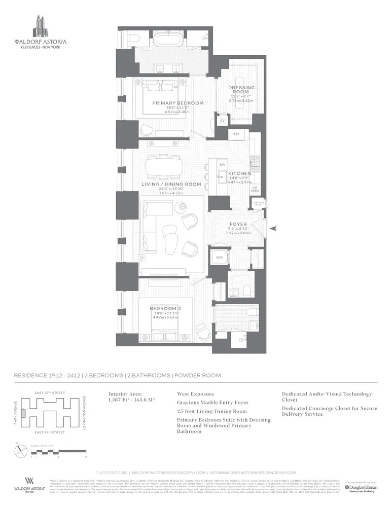 Own a piece of the legacy at Waldorf Astoria Residences New York. Residence 2412, is a split two-bed, two-and-a-half-bath overlooking iconic Park Avenue.