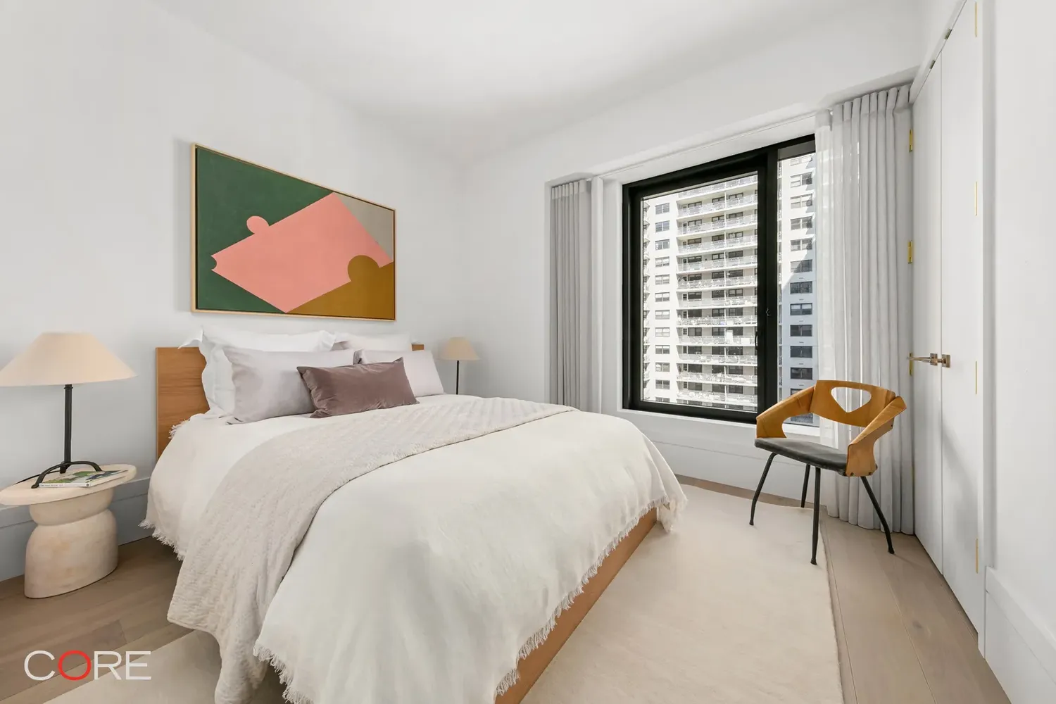 All three bedrooms are tucked down the hall and provide the utmost privacy from the entertaining areas of the home. The primary bathroom is a sanctuary of refinement, enveloped in Crema Luna limestone complemented by Namibia white marble. Radiant heated floors and high-end plumbing fittings from WaterWorks elevate the luxurious experience. Additional features of this apartment include a separate powder room, white oak flooring, solid core wood doors with Valli & Valli hardware, a side-by-side washer and dryer, and a high-efficiency central VRF system for heating and cooling.