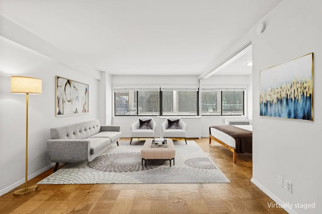 310 W 56th Street is a well-maintained cooperative with a full-time doorman, live-in superintendent, elevator, a new laundry room, and bike storage. The building is pet-friendly and allows pied-a-terres, parents purchasing for children, gifting, and has no restrictions on subletting.