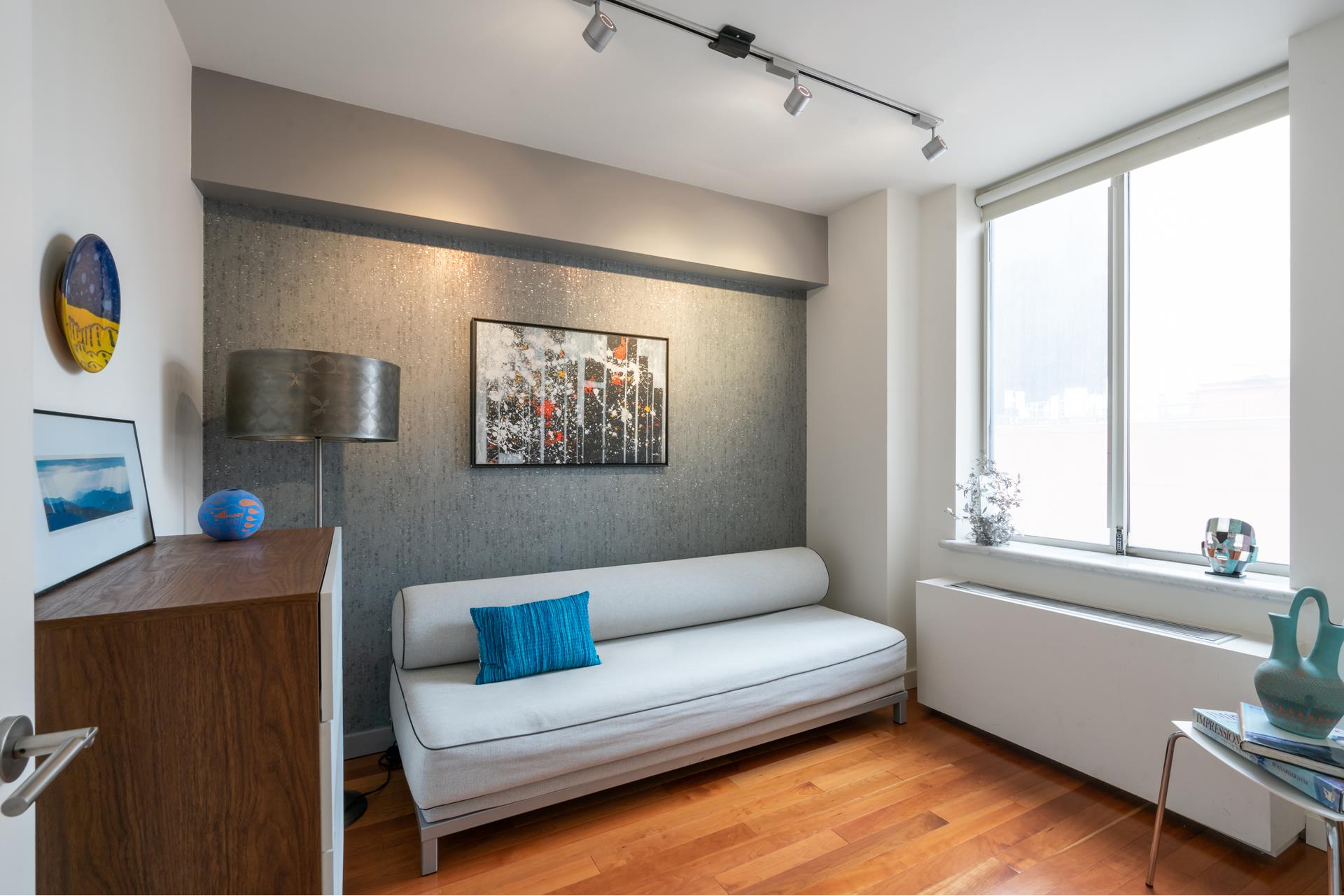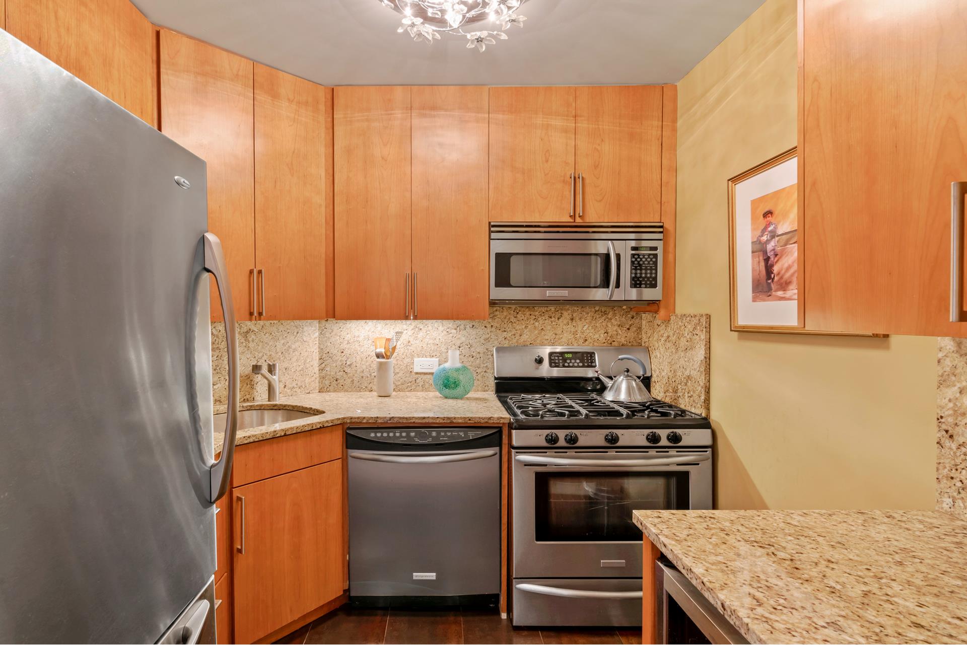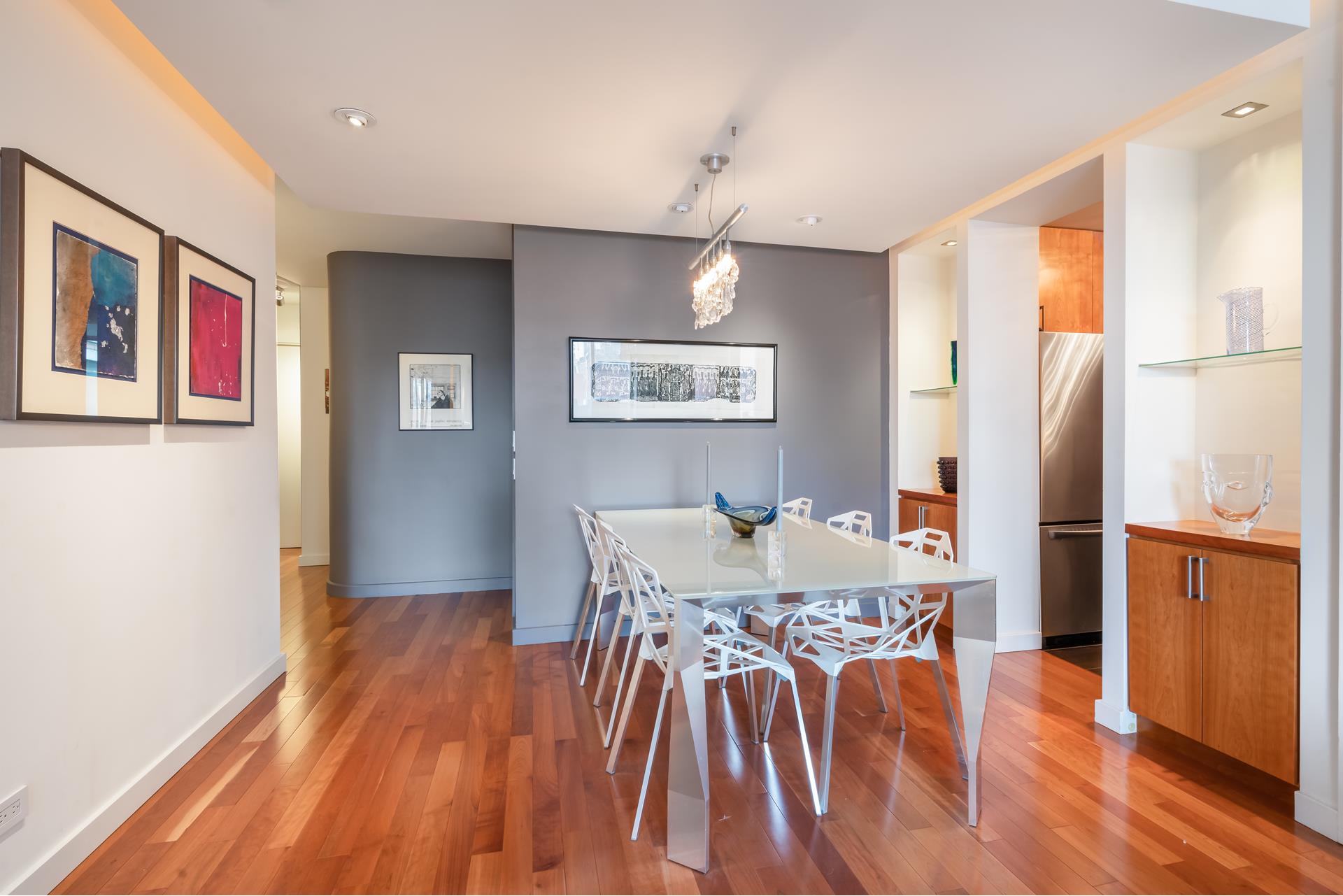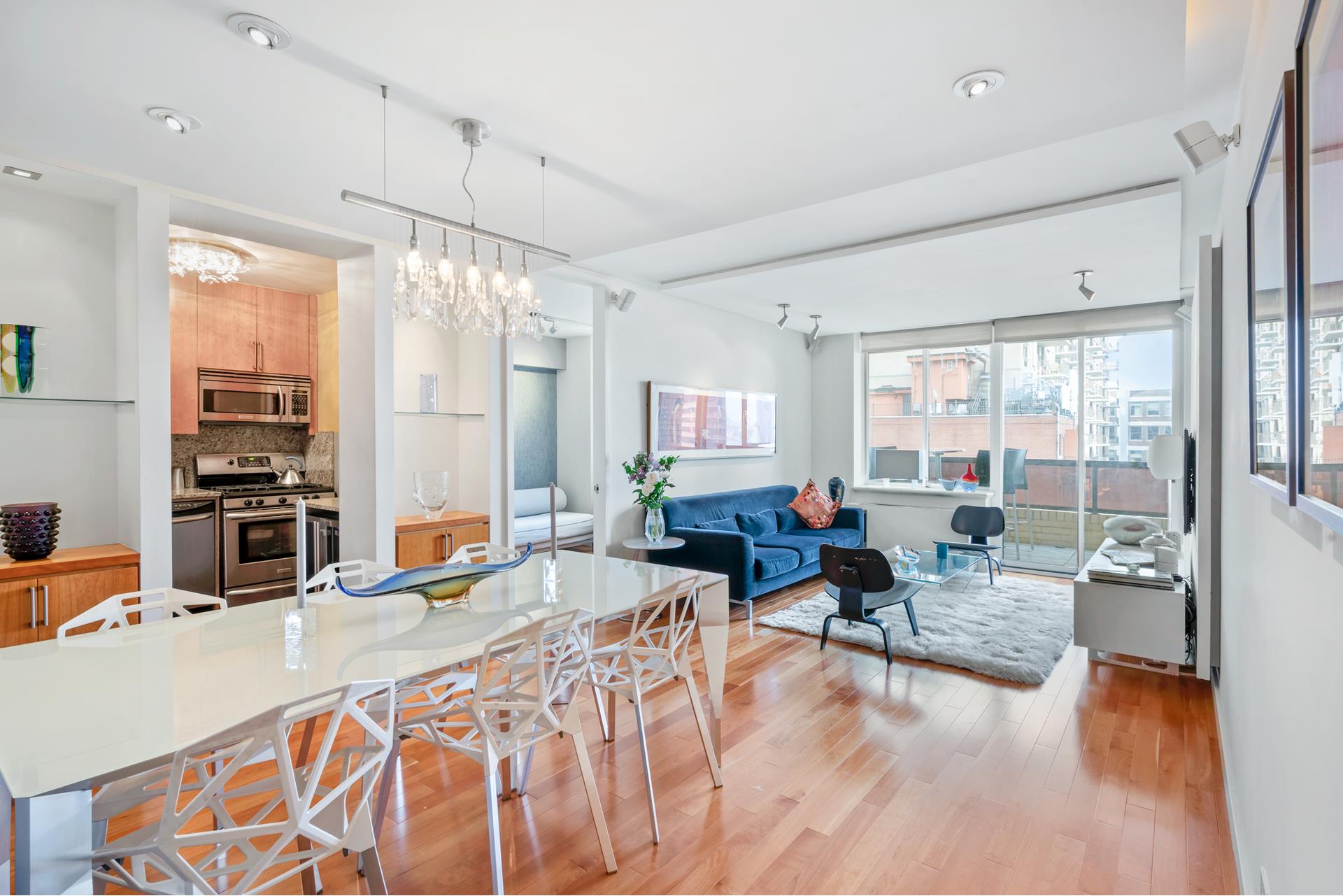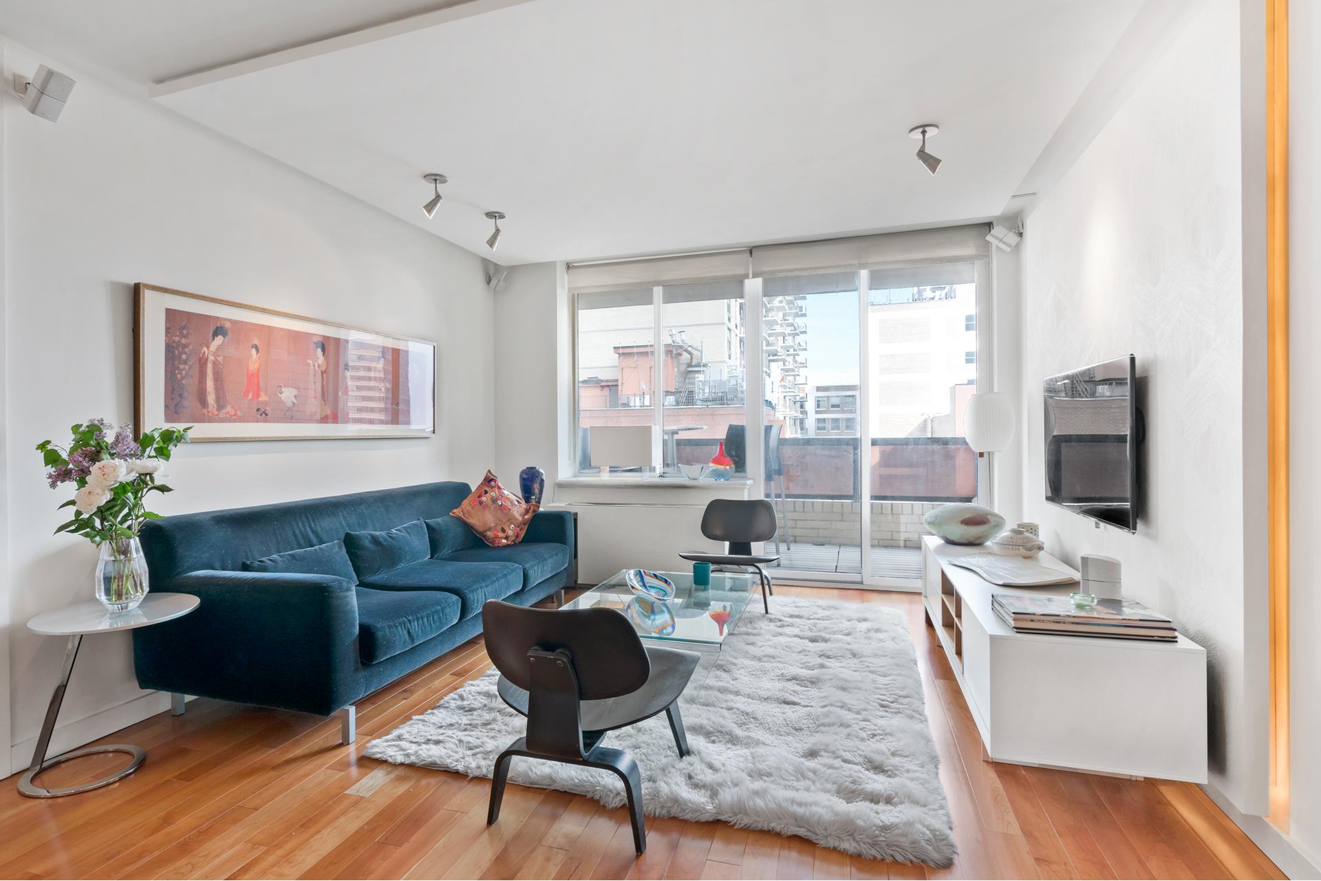 Move right into this architecturally designed two bedroom home. Split bedrooms, feels like 900sf! Beautiful foyer, floating ceiling and walls with custom lighting, surround sound and built ins. Newly renovated kitchen with custom solid Cherrywood cabinets, granite counters,SS appliances and wine cooler. Custom floors of planked Cherrywood. king size master bedroom with a very cool renovated ensuite bathroom. The half bath is also renovated. With TWO terraces facing East, with custom lighting and West, the apartment has great light, open views with a sliver of the river view. Great location, near Grand Central, the #6, and the U.N The building is pet friendly.
