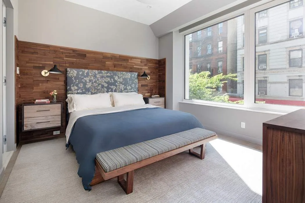 This desirable split 3-bedroom layout offers privacy and separation. A large primary suite with a walk-in closet by Molteni, an en-suite five-fixture bathroom with floor-to-ceiling stonework, and southern light streaming through creates a lovely oasis. The secondary bedroom wing features two spacious bedrooms with gorgeous western light, a full bath and ample storage space. The third bedroom, currently used as a home office, has a custom walnut murphy bed bookcase unit, offering flexible use of the space.