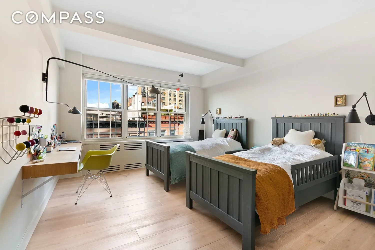 Wide-plank white oak floors anchor an intuitive layout that feels open yet private. Large windows frame landmarked brownstones and open sky, creating a tranquil, gallery-like backdrop for daily life.