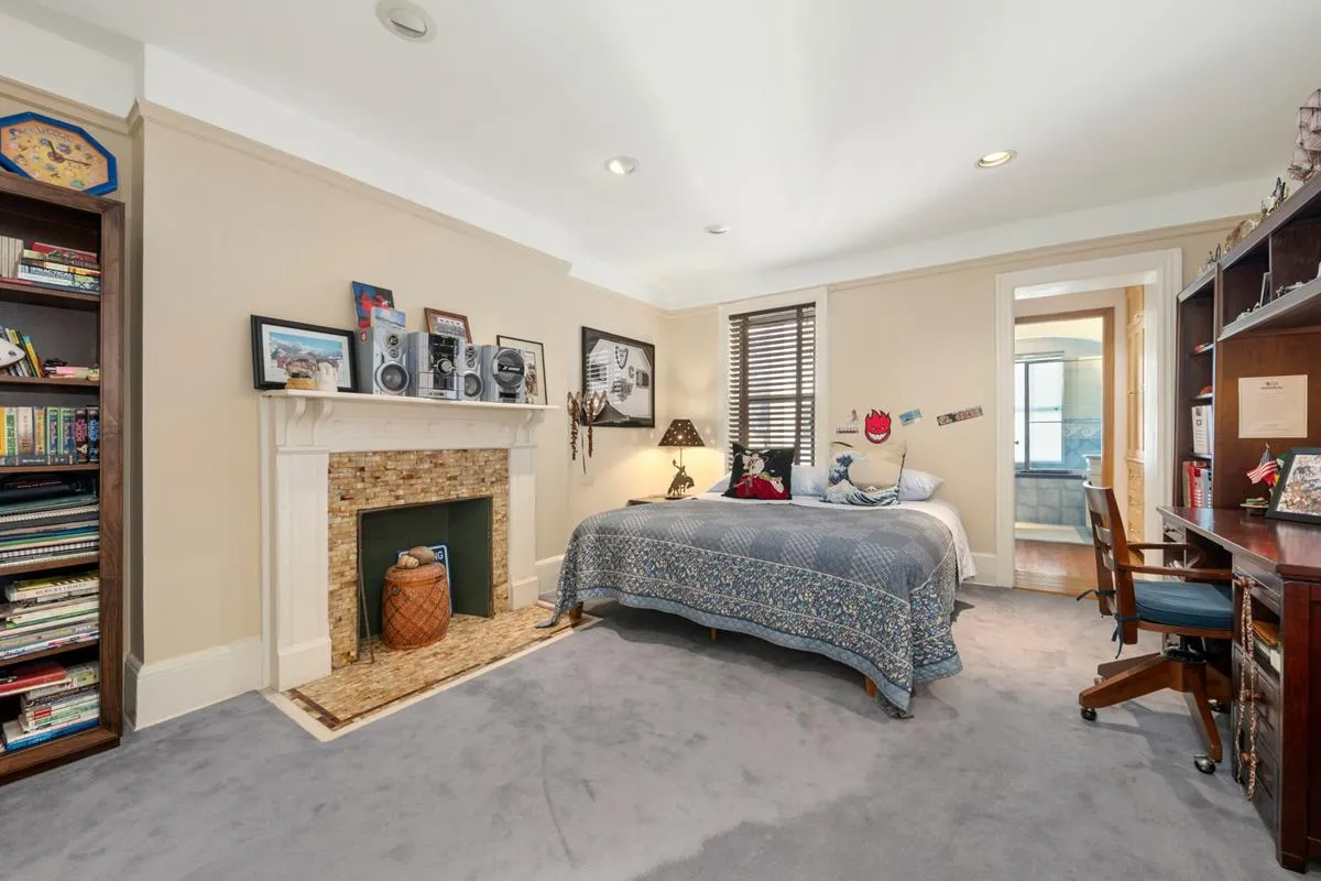 Parlor Floor: One level up from the entry, the Parlor Floor features a charming landing with an original built-in wooden staircase bench. The sun-filled, south-facing living room includes a decorative original fireplace.