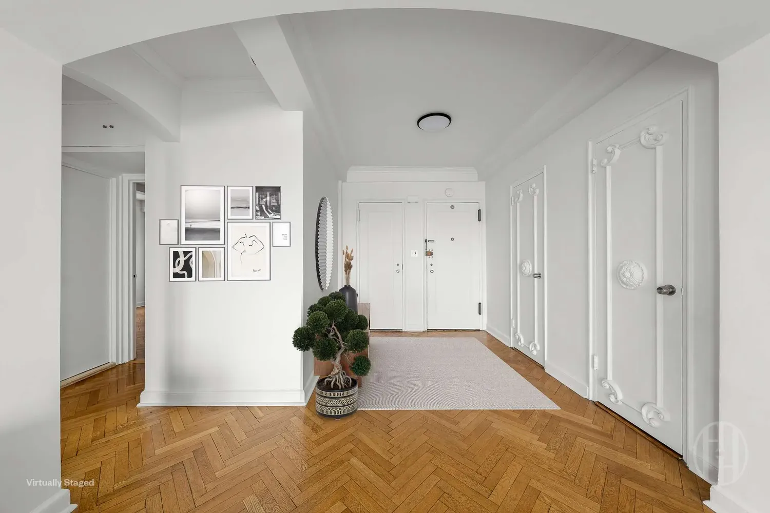 Original arch-detailing, oakwood herringbone floors, handcrafted doors, beautiful crown moldings, 7 closets, and smart ceiling-height storage solutions throughout the home.