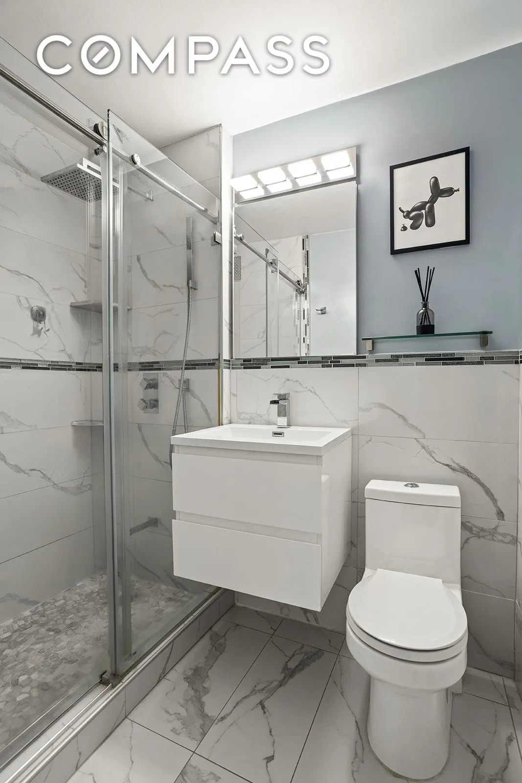 And the king-sized bedroom? It's a cozy retreat with ample of natural light and a big custom closet for all your many things. You'll have plenty of room for a desk here and more that matching bedroom set that other bedrooms in the city just don't seem to fit.