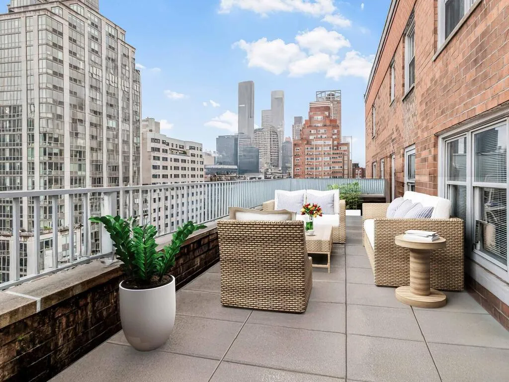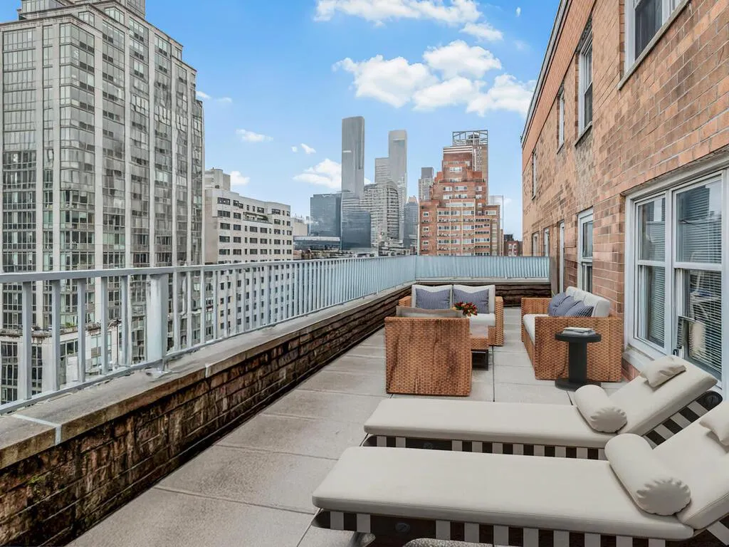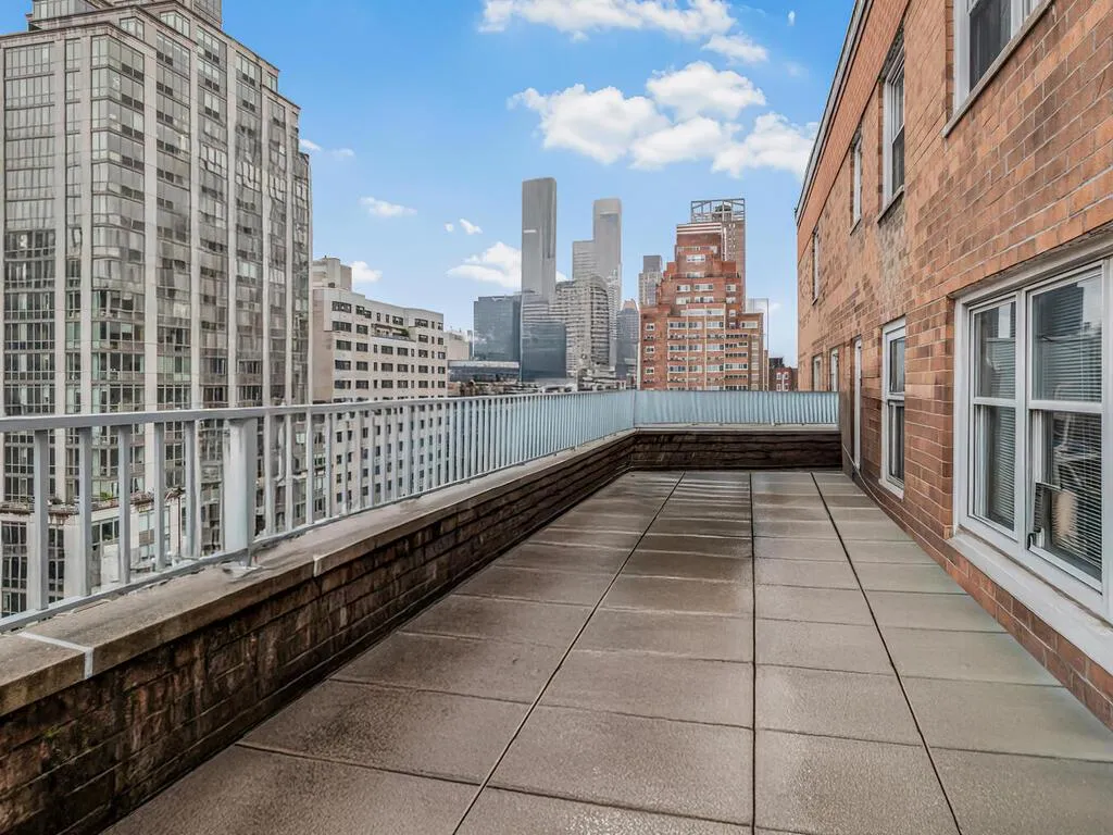Welcome to this charming 12th-floor one-bedroom apartment with stunning ΝYC skyline views and a private terrace. The spacious foyer with hardwood floors flows into a bright living area and cozy kitchen. The generous living room features Northeast exposure, offering natural light and ample space for relaxing and entertaining. Step outside to the expansive terrace—perfect for alfresco dining, entertaining, or enjoying morning coffee with incredible city views. The king-size bedroom offers peaceful surroundings, room for a home office, and spacious closets. Additional storage is available with a deep linen closet in the hall. Located in the sought-after Bryn Mawr in Lennox Hill, enjoy easy access to NYC's top medical centers, dining, shopping, and transportation. The scenic East River walkway is just a short distance away. Building amenities include a doorman, fitness center, sauna, landscaped roof deck, parking, updated laundry, bike storage, and rentable storage. A live-in superintendent ensures easy building management. Subletting allowed after one year, with pets and in-unit washer/dryer installations permitted (with approval).