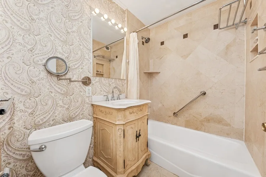 The apartment has been well cared for with stunning plank wood floors throughout and is ready for your stylish personal touch. The kitchen offers plenty of cabinet space and high end appliances with granite counter tops and a lovely back splash. The kitchen can be transformed into an open floor plan, enhancing the flow and connectivity of the living space.