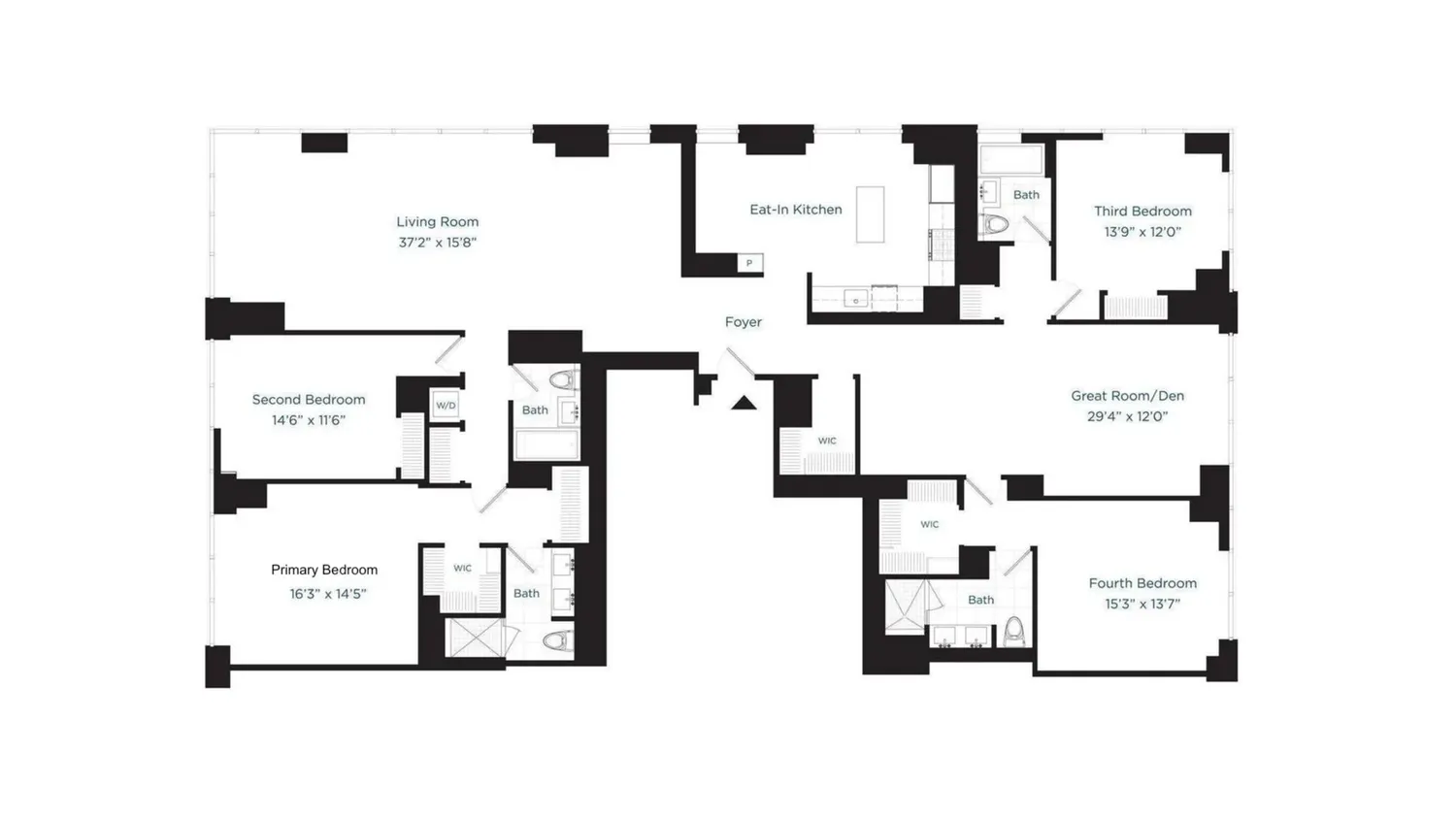 Spanning over 3,000 square feet this sun-filled four-bedroom, four-bathroom residence is defined by its expansive scale, 10-foot ceilings, and dramatic floor-to-ceiling windows showcasing open western, northern, and eastern exposures.
