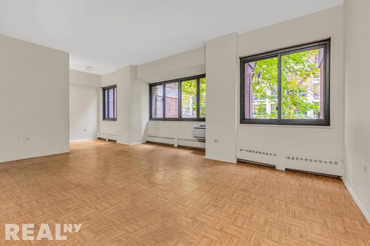 With an identical layout to its higher-floor counterparts, but with much higher ceilings, Unit 1G offers all the space youre looking for at a great value. This south-facing apartment features an efficient and flexible layout with large windows, a separate eat-in kitchen, and excellent floor to ceiling closet space, all facing away from busy streets while still overlooking sunny greenery.