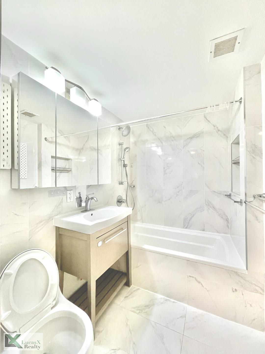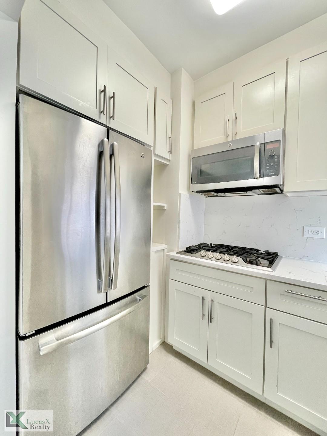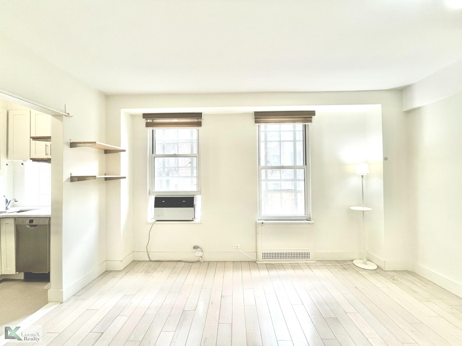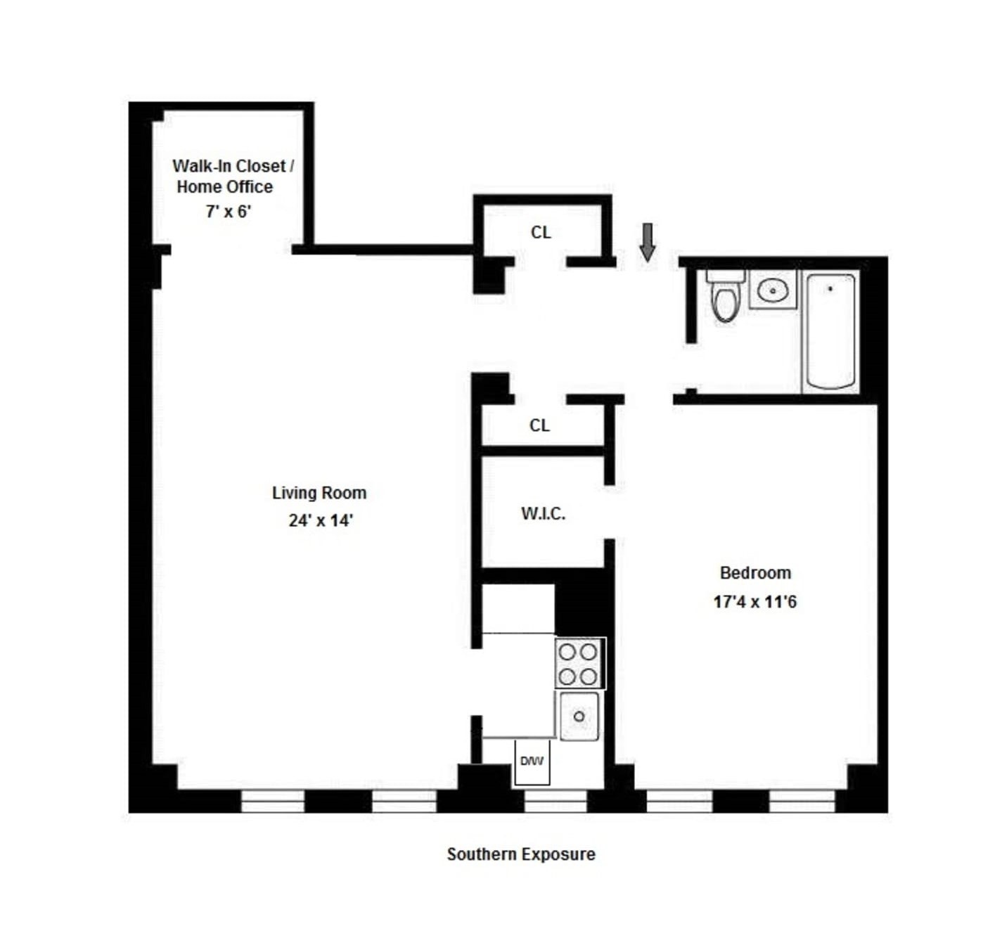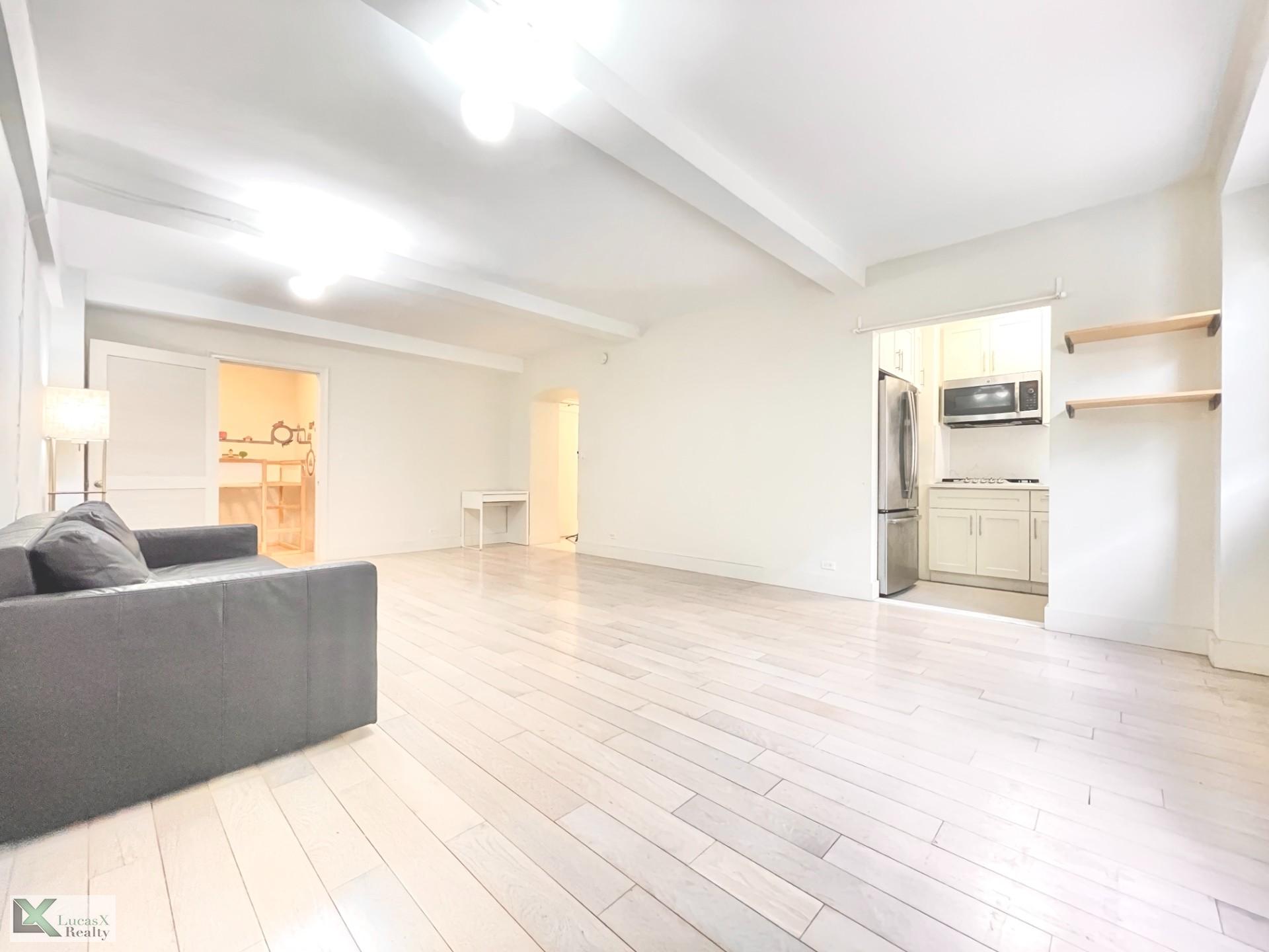 This newly renovated 1-bedroom apartment offers over 800 s/f of living space in a prewar white-glove condo building. The apartment is generously proportioned a formal entry foyer with 2 wide closets adjacent an oversized living room. which offers extensive alcove area as office den; South facing bedroom features highly customizable walk-in closet. Solid hard wood floor and marble tiles covered through the whole unite. Windowed kitchen includes stainless-steel appliances, Quartz countertop, French door fridge, Bosch dishwasher, and vent out hood combined with convection microwave oven. Other features include double-layer sound-proof windows, floor to ceiling tiled bathroom, custom made vanity, bathtub, and toilet.