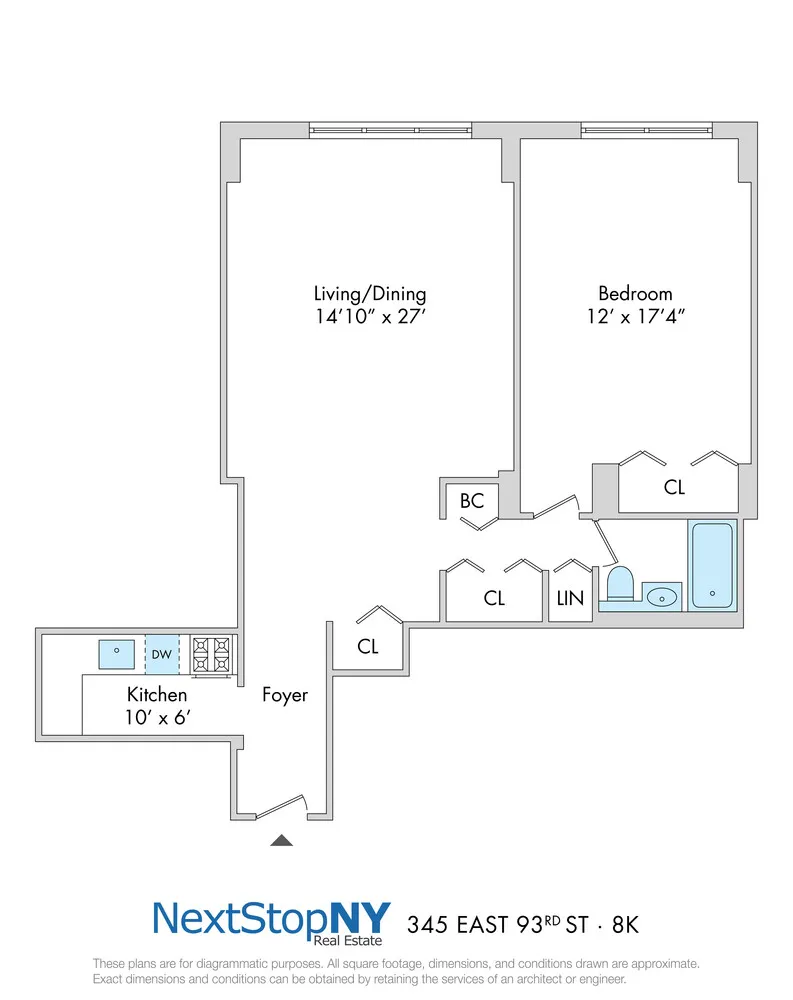 Welcome to 8Κ, the largest one‐bedroom layout available in the building. The entry foyer leads into a home featuring oak plank floors and an oversized, functional layout. In the kitchen, Caesarstone countertops and stainless steel appliances are paired with a glass tile backsplash and plenty of cabinet storage. The living area, over fourteen feet wide, provides ample space for a generous seating arrangement, a full-sized dining table, and plenty of room for a workspace. Large east-facing windows keep the interior light and bright. The spacious bedroom accommodates a king-size bed and plenty of bedroom furniture with large closets. There are additional hallway closets, offering more than enough space for all your belongings.