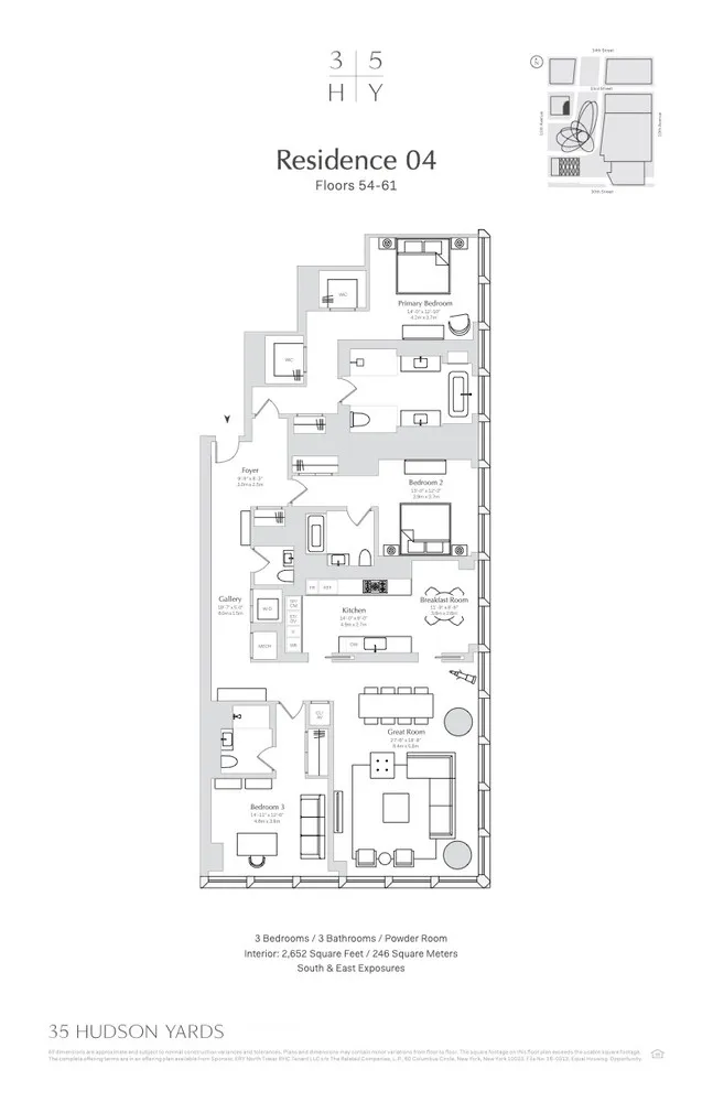 The complete offering terms are in an offering plan available from sponsor. File No. CD16-0313. Sponsor: ERY North Residential Tower LLC, c/o The Related Companies, L.P., 30 Hudson Yards, New York, New York 10001. Sponsor reserves the right to make changes in accordance with the terms of the Offering Plan. Equal Housing Opportunity.