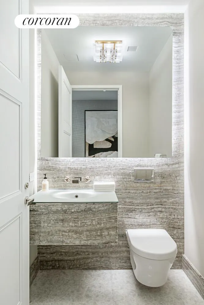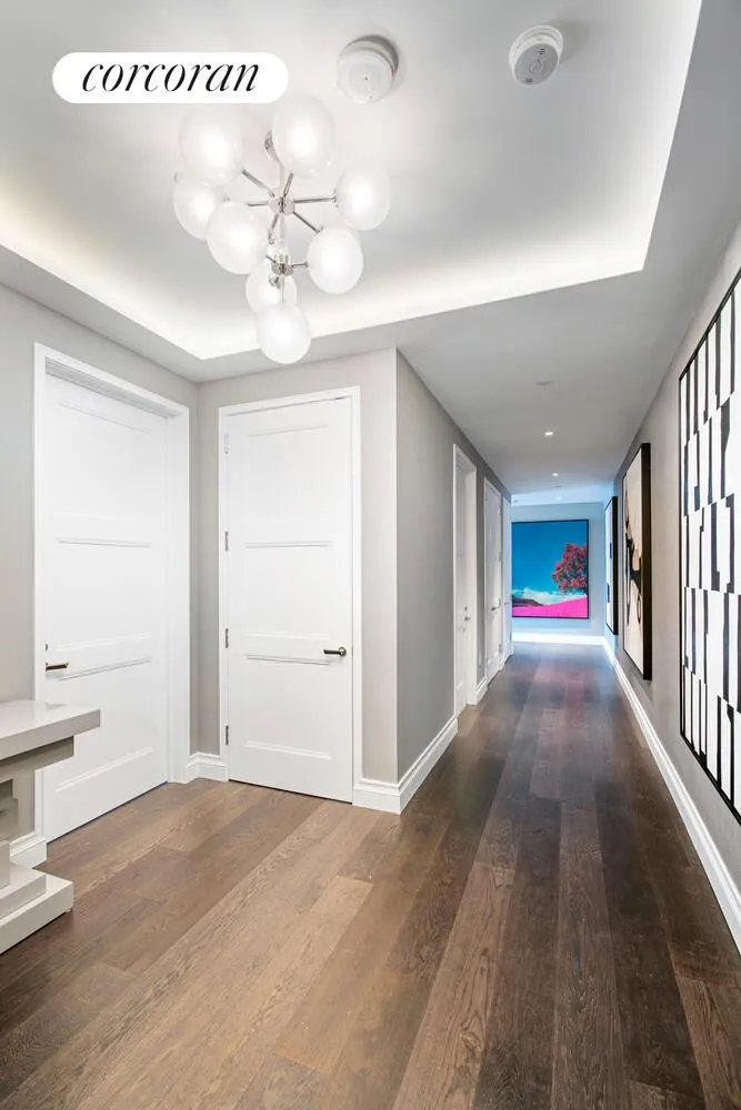 This expertly planned three bedroom residence boasts 10'10" ceilings, lavish satin finish wide plank French oak floors, and stunning views of the Hudson River from the corner Great Room. The windowed eat-in kitchen has been outfitted with luxurious Smallbone of Devizes cabinetry with opal white marble counters and backsplash. Full suite of Gaggenau appliances, inclusive of a wine fridge and coffee maker, truly make this kitchen extraordinary. The master bedroom boasts two large walk-in closets and a luxurious windowed master bathroom which is wrapped in stunning iceberg quartzite, complete with stunning double vanity with Kinon panels, and full depth soaking tub. The second and third bedrooms are both equipped with en-suite baths. The Washer/Dryer and handsome onyx- clad Powder Room are both conveniently located off the main hallway. No detail was overlooked in this truly exquisite home.