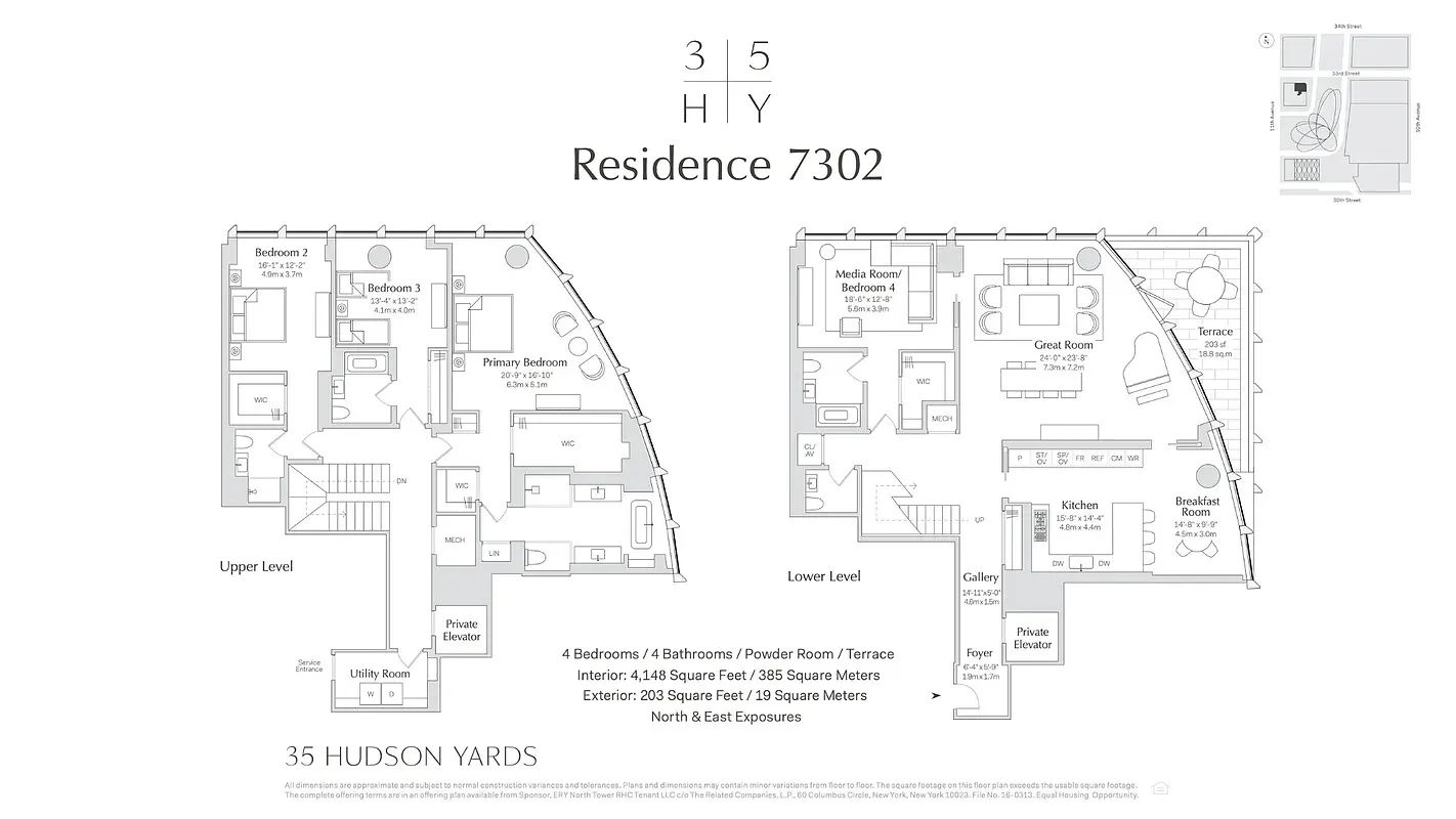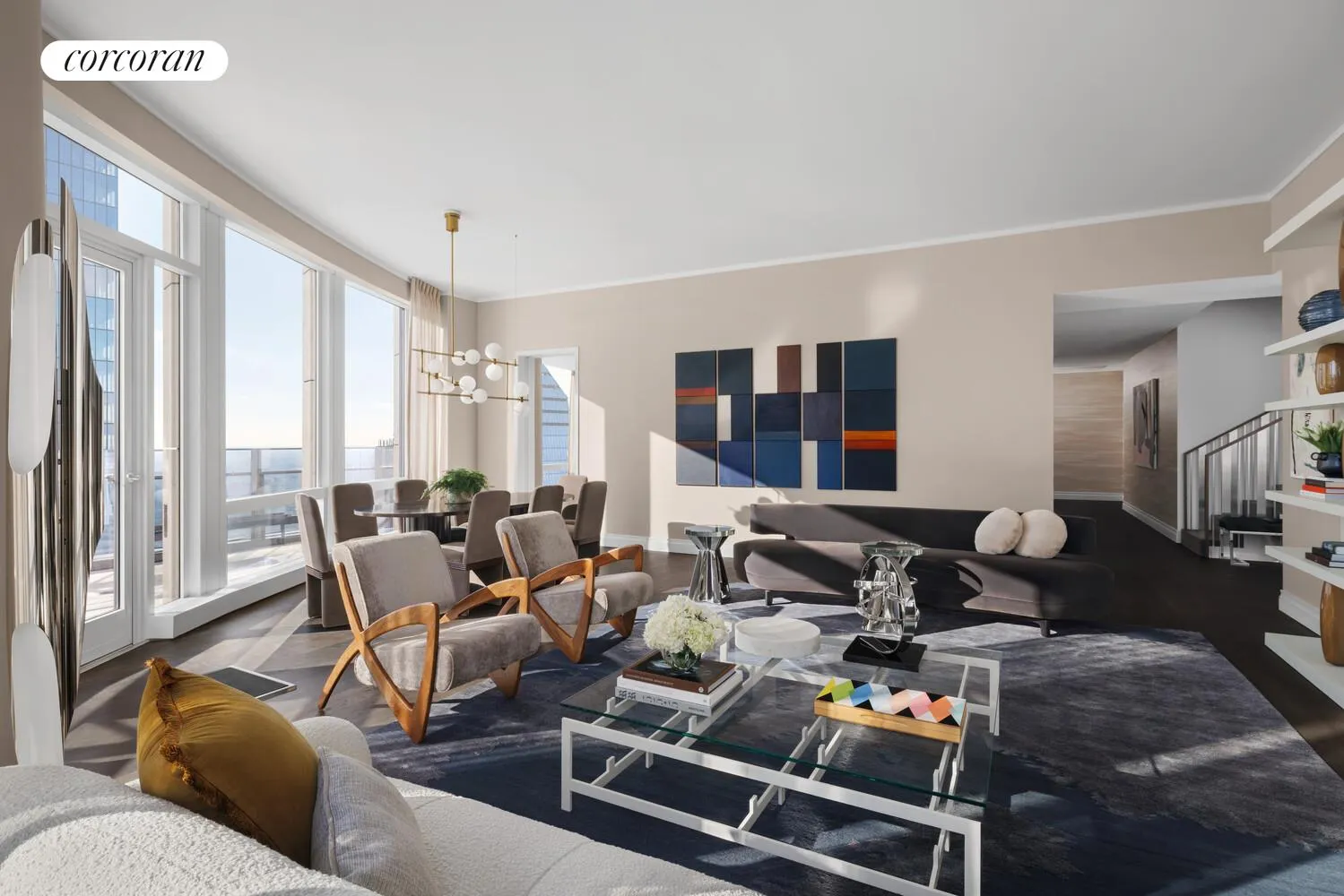 Offered fully furnished, this extraordinary high-floor four-bedroom duplex residence at 35 Hudson Yards showcases sweeping skyline and Hudson River views, soaring 10'10" ceilings, and elegant wide-plank French oak floors throughout.