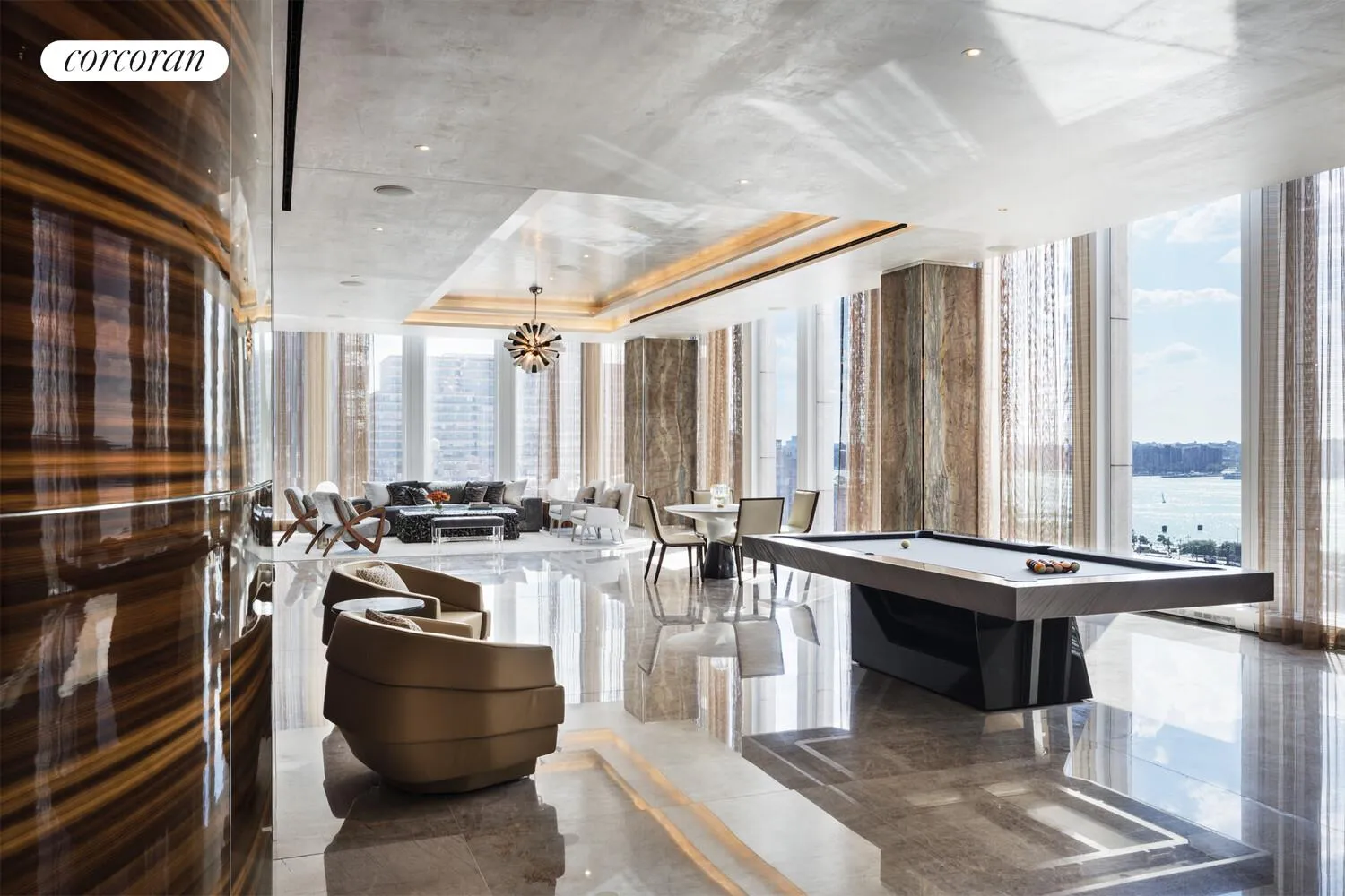 Designed by David Childs/SOM, with interiors by AD100 designer Tony Ingrao, 35 Hudson Yards offers an unparalleled lifestyle. Residents enjoy direct access to the Equinox Club and Spa with indoor and outdoor pools, SoulCycle, the Equinox Hotel, and Electric Lemon by Stephen Starr. Over 22,000 SF of private amenities include a fitness center, yoga and meditation studios, cocktail lounge, screening room, golf simulator, and riverfront dining terrace.