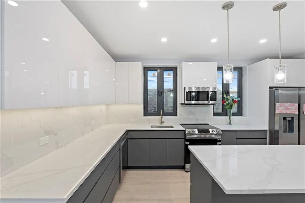 New Construction Home! Every detail has been thoughtfully designed. Spacious, light-filled rooms flow seamlessly creating an atmosphere of refined comfort and effortless entertaining. The main level offers grand scale living, high ceilings, and lush textures—ideal for elegant dinners and celebrations. The contemporary design extends to luxurious bathrooms, radiant heated floors throughout, and a convenient washer and dryer hook-up. Natural light pours in through triple-pane, sound-attenuating windows, while the multi-zone HVAC system ensures year-round comfort. Additional space offers flexibility for an office, a balcony, a garage, a driveway, and a private backyard perfect for entertaining. Energy-efficient construction keeps costs low, living in Brooklyn Suburb, Gerritsen Beach Area! Home is architecturally crafted and carefully designed with the best European material. Each detail of home offers the most comfort for your individual needs. Lower level featuring additional space with two entrances that can be great for office or family/movie room. A built-in closet and master bedroom include a large walk-in closet. Top to bottom European glass windows and doors to terrace bring in an enormous amount of natural light. Spotlights through all three floors of the house. Balcony conveniently accessible from living room area. Central cooling system is controlled from each room separate. Top two floors offer hardwood flooring. Laundry room is conveniently located on the second floor of the house. Garage and driveway. Backyard is accessible from first floor and features open space for outdoor relaxing and summer cooking. Energy efficient home with foam insulation, triple insulated windows, LED lightning and modern high efficiency heat pump and heat exchanger helps to conserve energy and keep the cost of heating/cooling low. Samsung appliances! low bills and property tax as well! Price for fast sale!