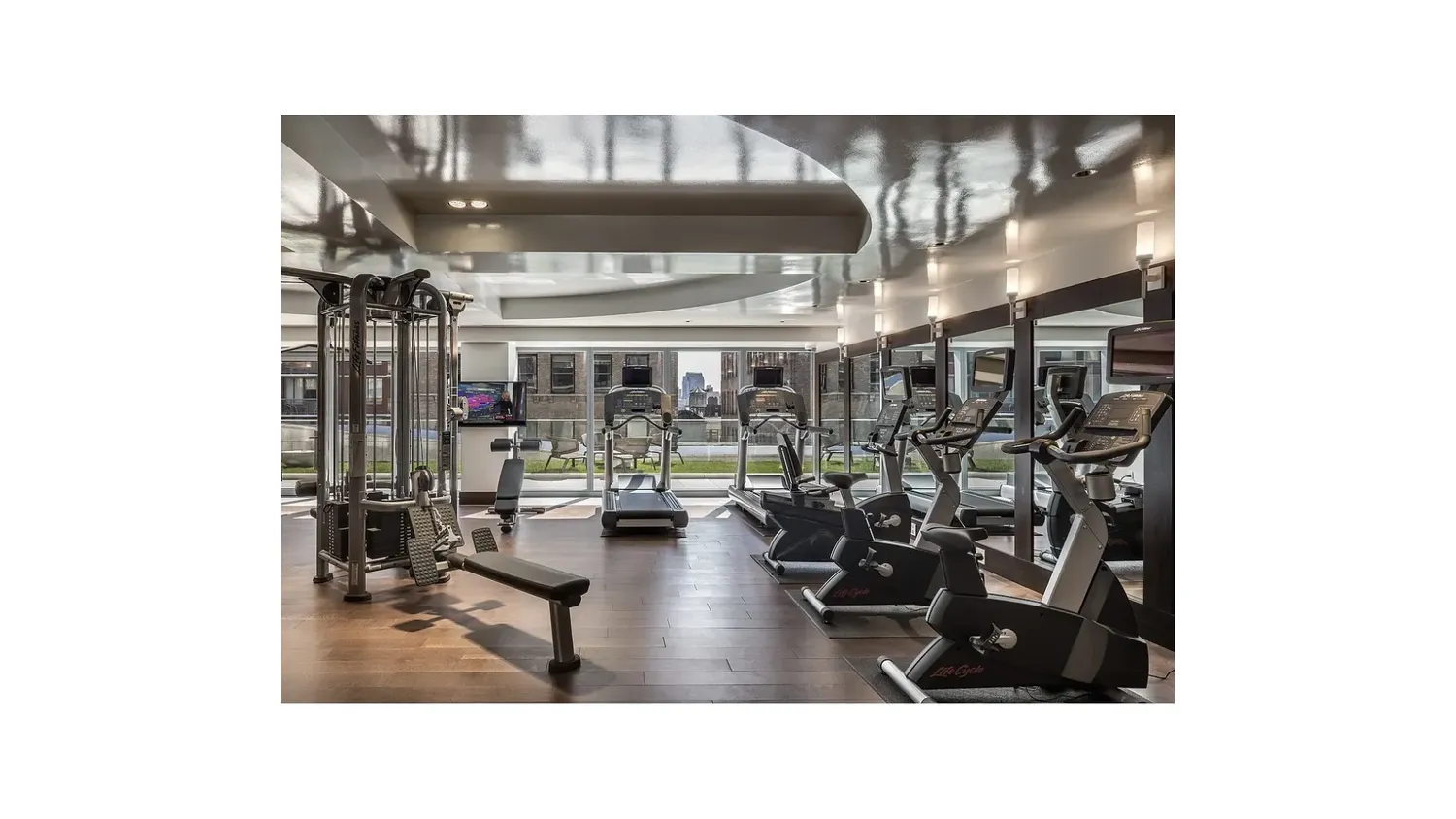 Residents enjoy a full-service lifestyle with an impressive array of amenities, including 24-hour doorman and concierge service, a live-in superintendent, and a state-of-the-art fitness center overlooking a 75-foot landscaped terrace. Additional amenities include a residents' lounge, billiards room, dining and entertaining spaces, a children's playroom, temperature-controlled wine storage, bicycle storage, package room, and private storage. The building is pet-friendly, welcoming both cats and dogs.