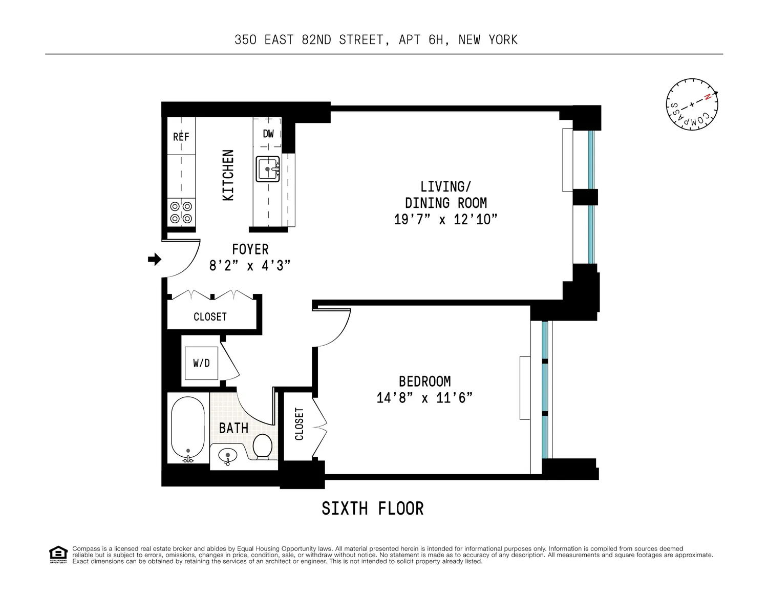 Upon entering, you are greeted by a gracious entry foyer and a double coat closet. The expansive living room measures 19’7” x 12’10” and comfortably accommodates both living and dining areas, offering an effortless layout for everyday living.